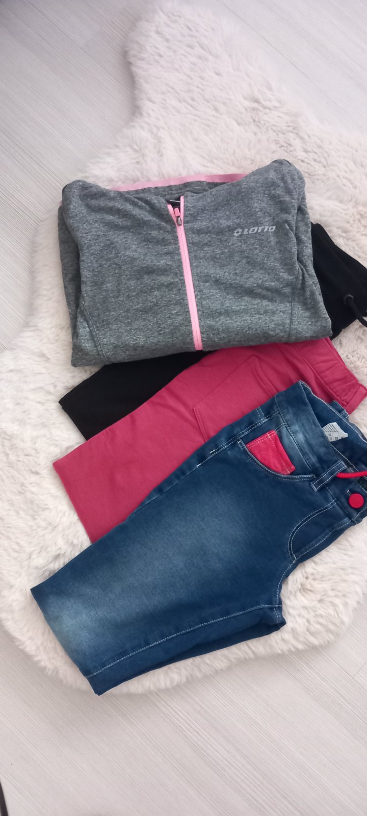 Pekná mikina v dobrom stave, kapuca sa jemne pára okrajové šitie, inak všetko funkčné, možno kombinovať s nohavicami alebo legínami..veľkosť 140/146 cena za mikinu bez pošty