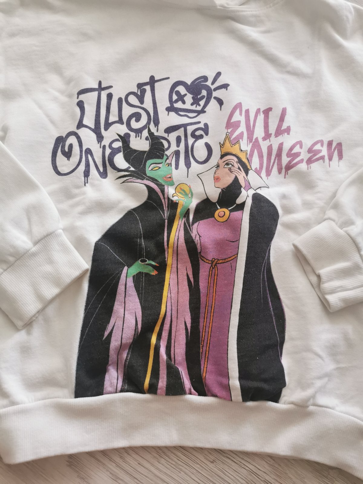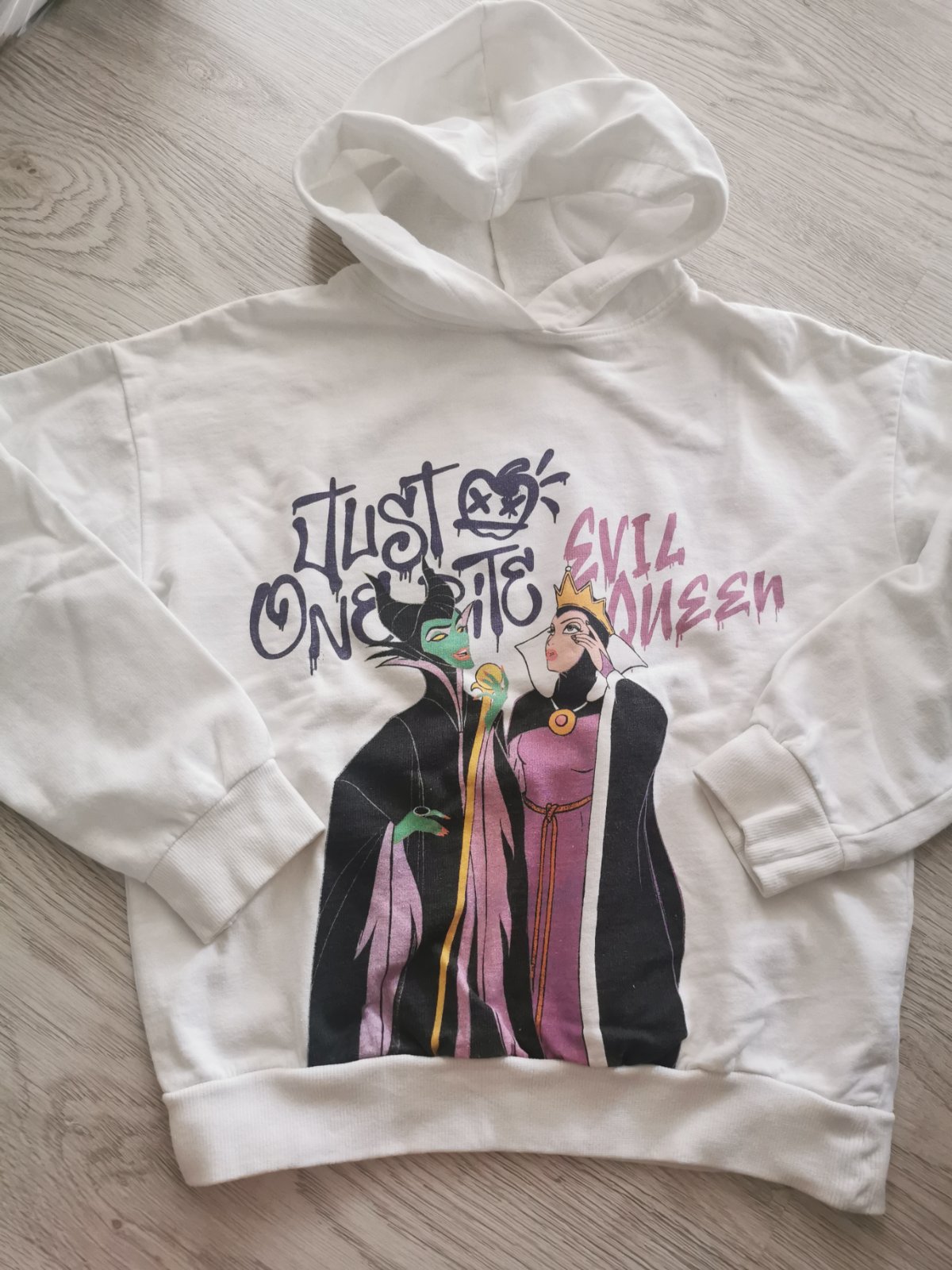 Mikina v top stave, veľkosť 146/152, bez poškodenia akurát nad obrázkom má kúsok od svetlomodrej farby aai od trička, možno pôjde vyprať. V