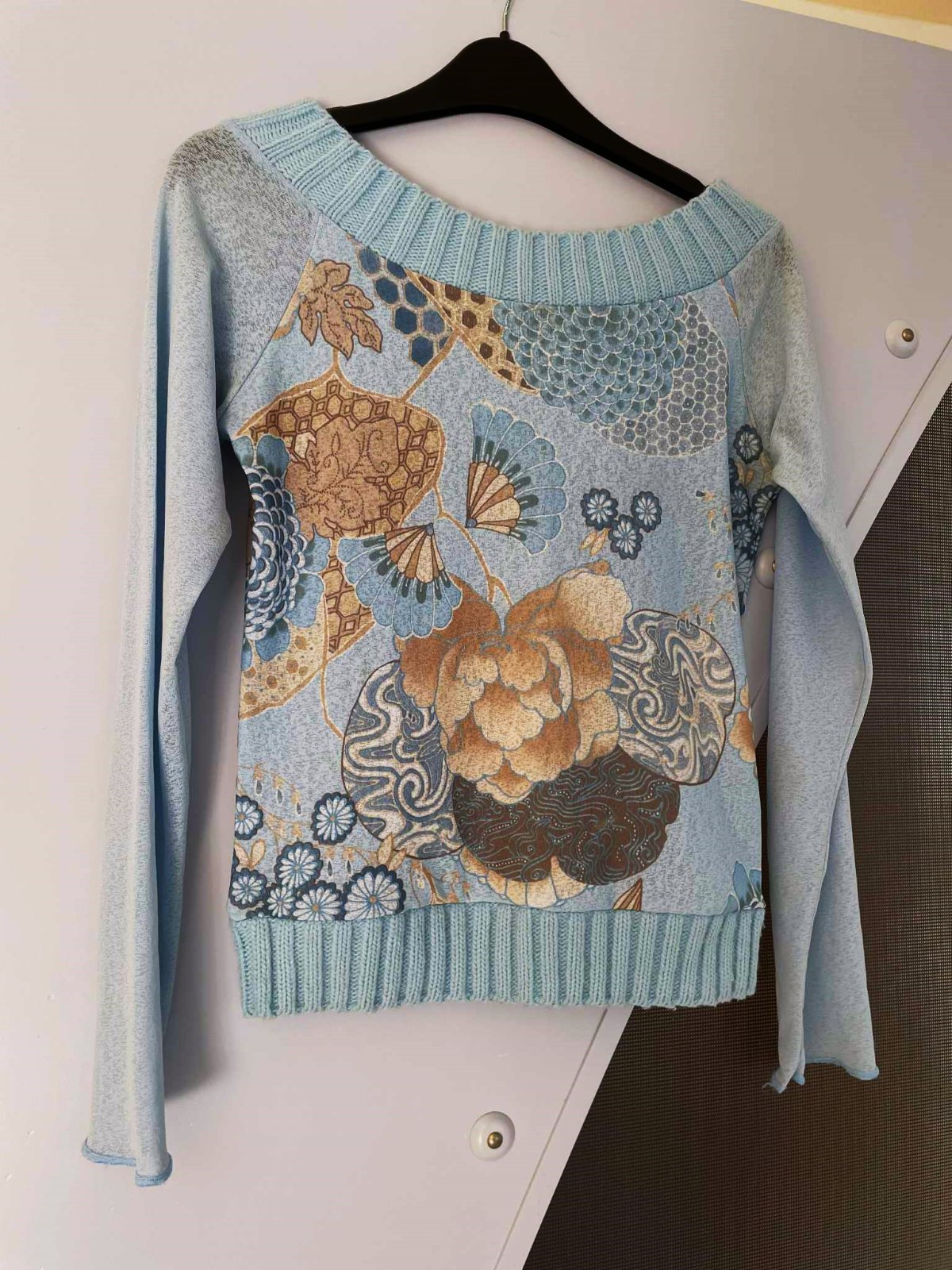 super tričko s jemným lodičkovým výstrihom,jemné pletené rumby,rukávy jemne elastické a jemne priesvitné ,trup podšitý,dá sa nosiť aj s posunutým odkrytým ramenom,