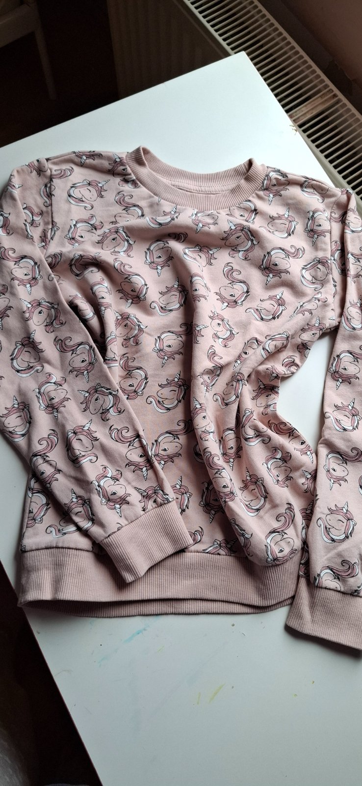 Krásna mikina s obrázkom s flitrami,dĺžka rukáva od ramena 41cm.Pohodlná,volnejší strih.Bez poškodení.