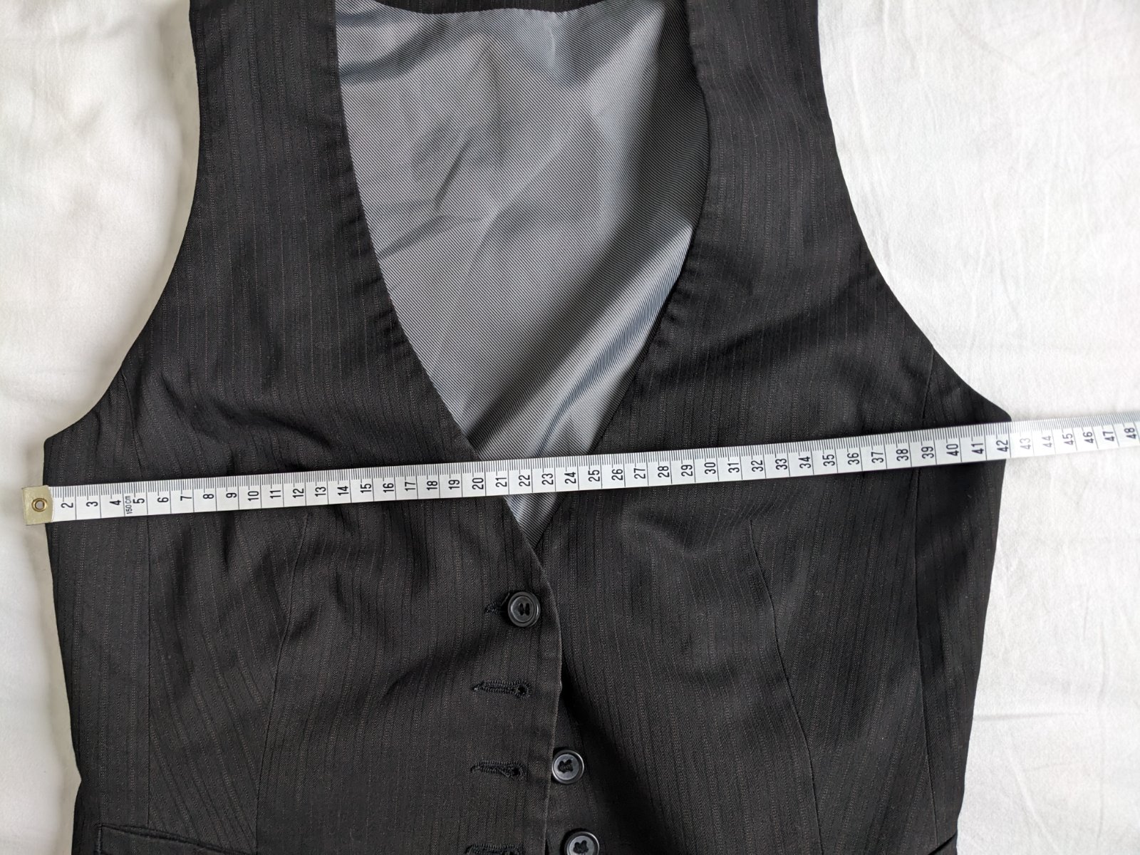 Darujem podšitú vestu na gombíky, čierna s jemnými prúžkami. Rozmery na foto.