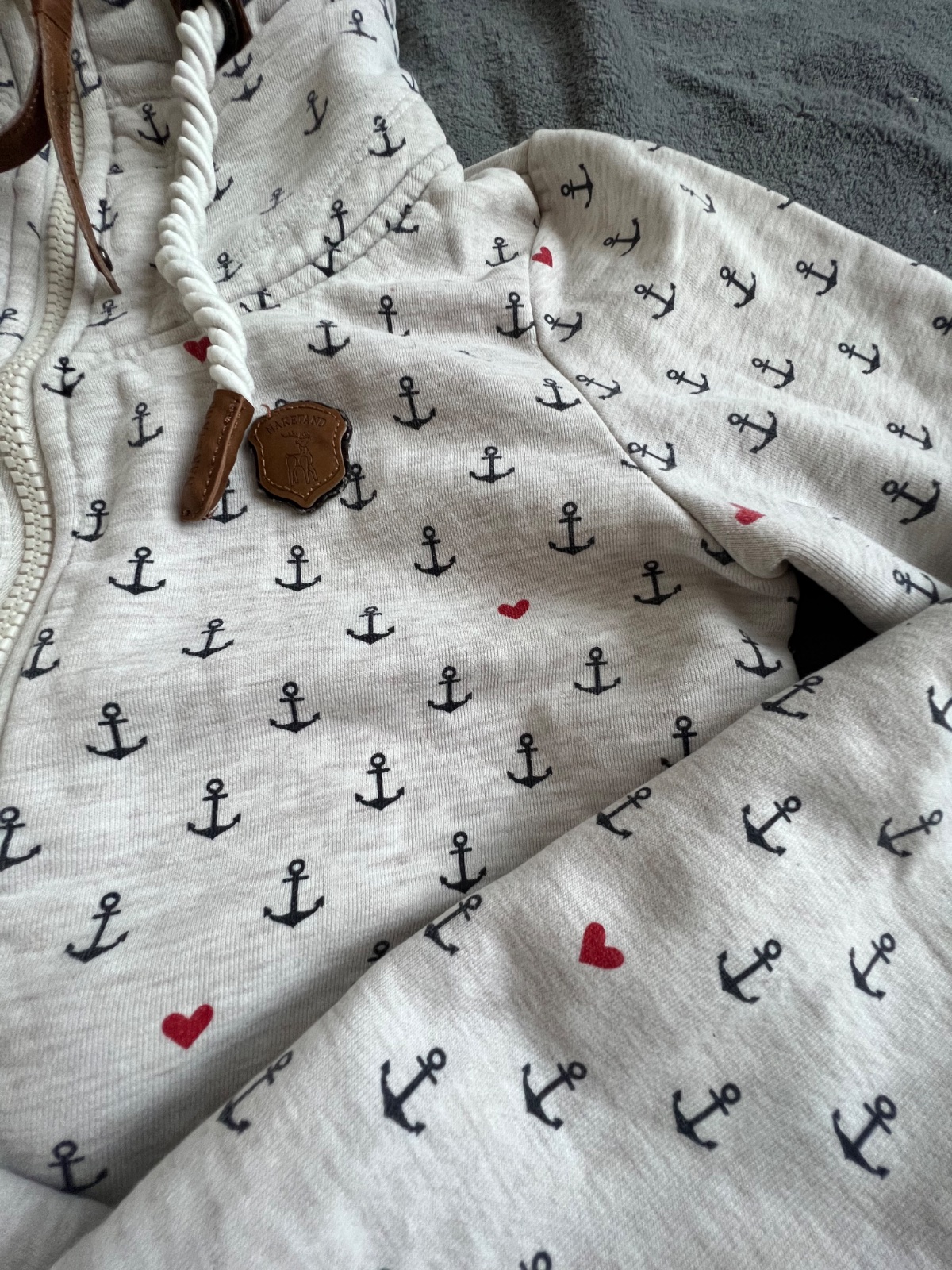 Mikina značky Naketano, jemne poškodenie na krku, vid fotka