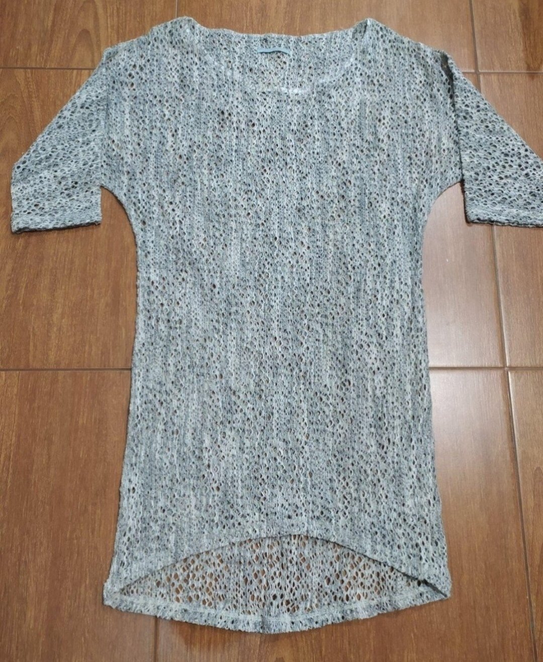Bezchybny pulovrik netradicneho strihu, s tristvrtovymi rukavmi, krasne pleteny, sadne aj vacsim velkostiam nakolko je elasticky