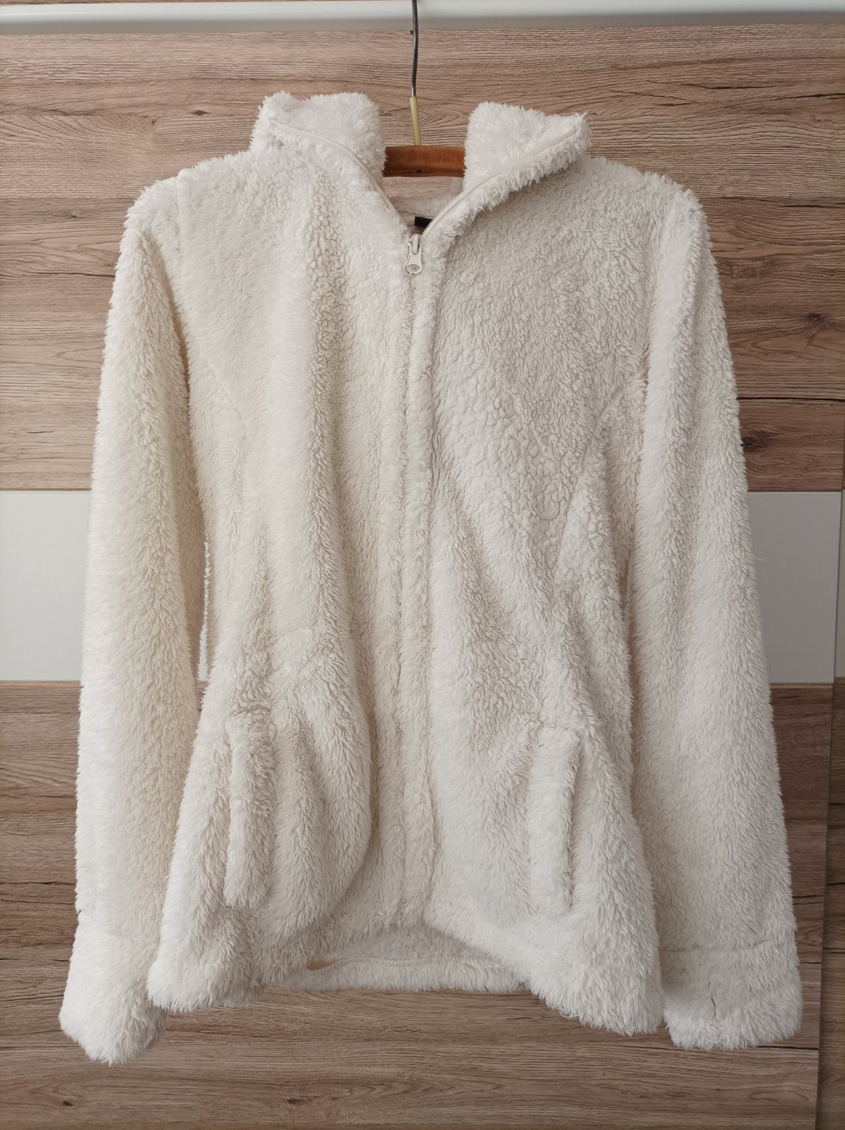 Predám bielu chlpatú mikinu, veľkosť 158 - 164, s kapucňou, používaná.