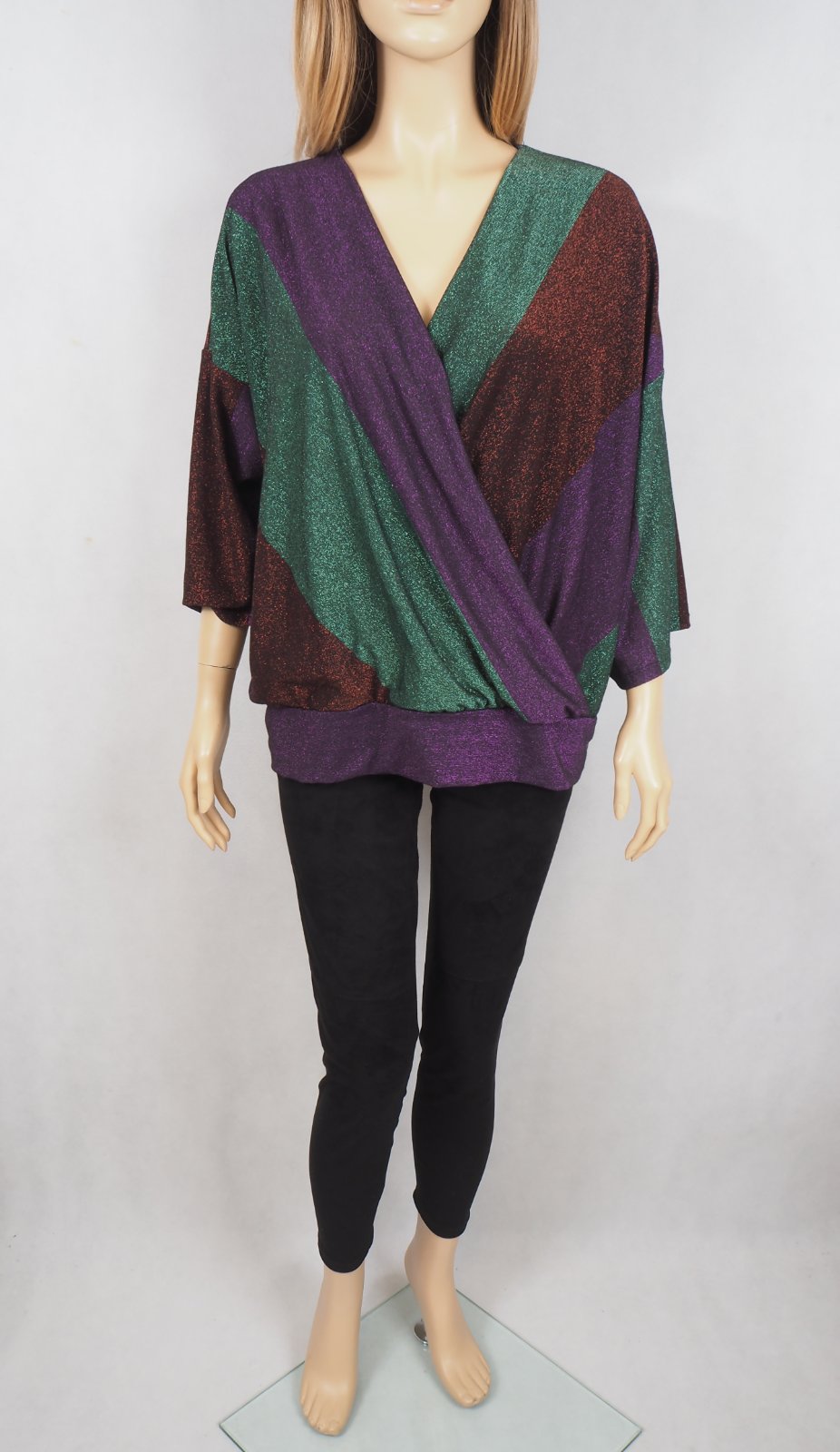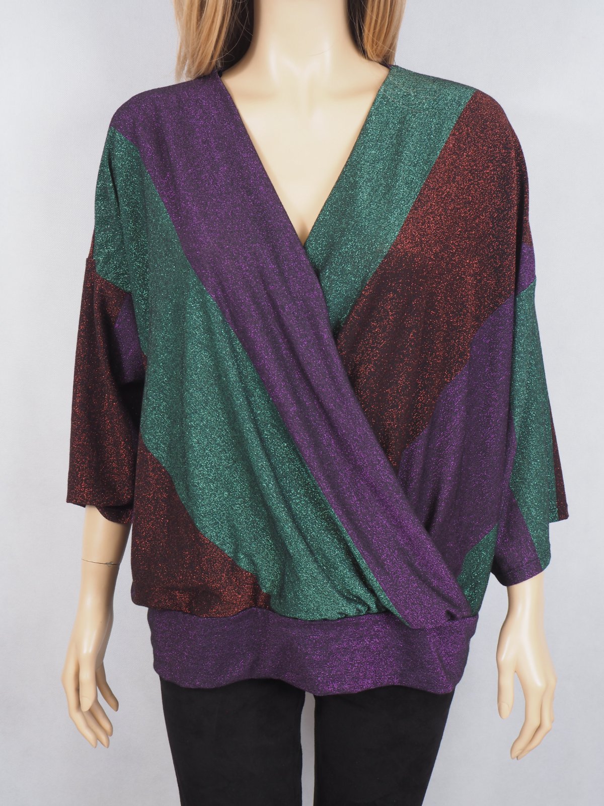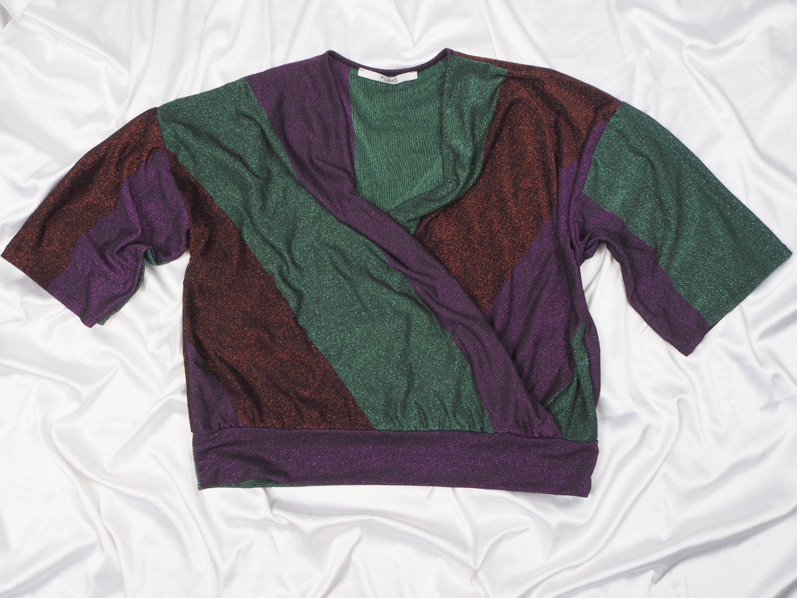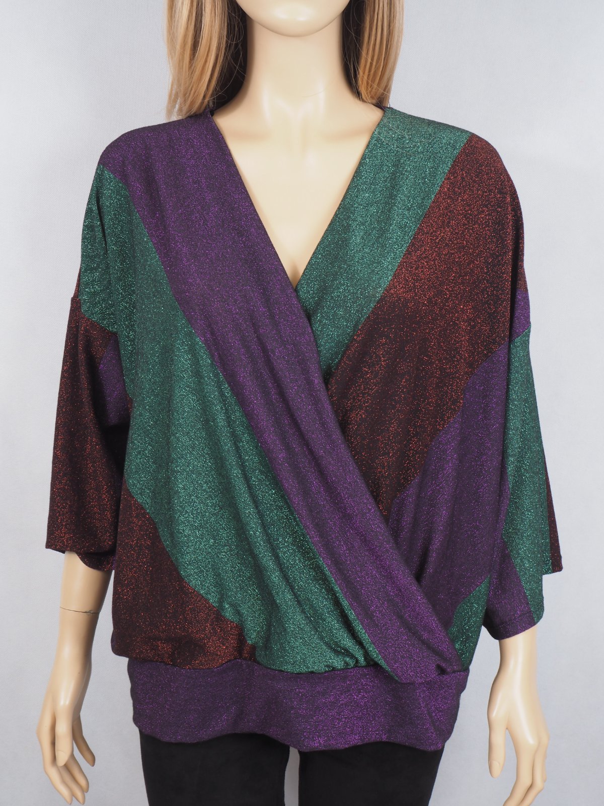 Kvalitný dámska tenký pulover s prekríženým výstrihom do pásu, krátky rukáv, zloženie materiálu na detailnej fotke, super stav, ako nový.