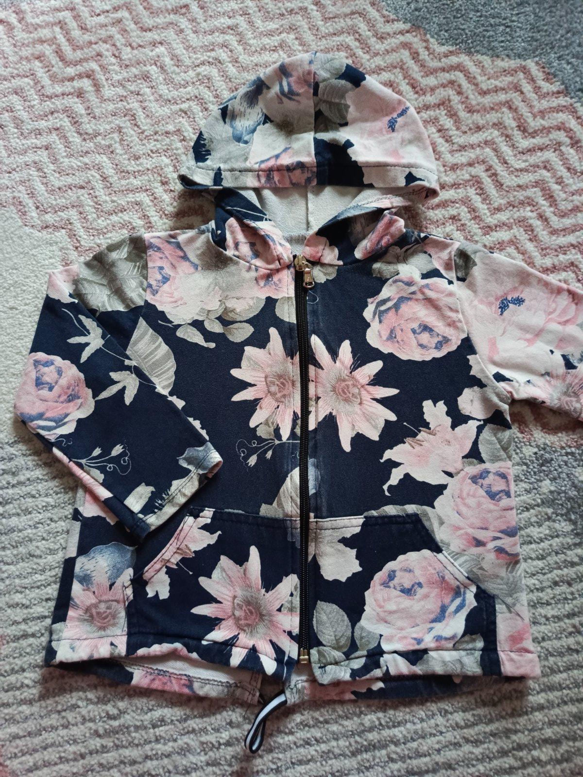 Krásna mikina. Na tmavomodrej farbe vidno pranie, inak bez poškodenia. Veľkosť odhadom, v prípade záujmu premeriam. Malá ju nosila ako 3-4 ročná.