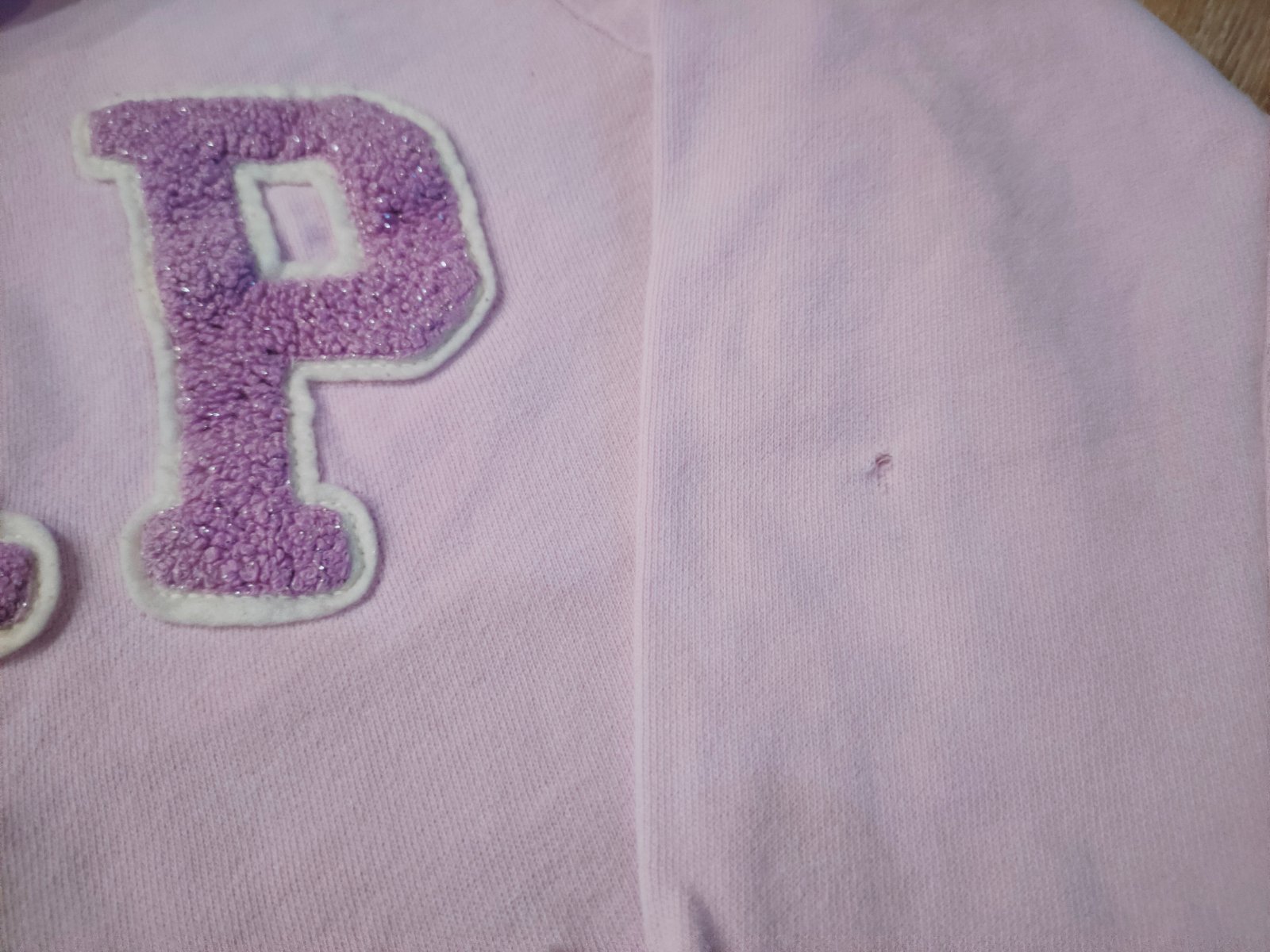 V dobrom nosenom stave, len nápis GAP, tá lesklá potlač má škvrnky neviem či je to praním, alebo proste používaním, zohľadnené v cene. Farba bledúčko fialová. Veľ. 130 na vysačke. Rozmery viď foto....
