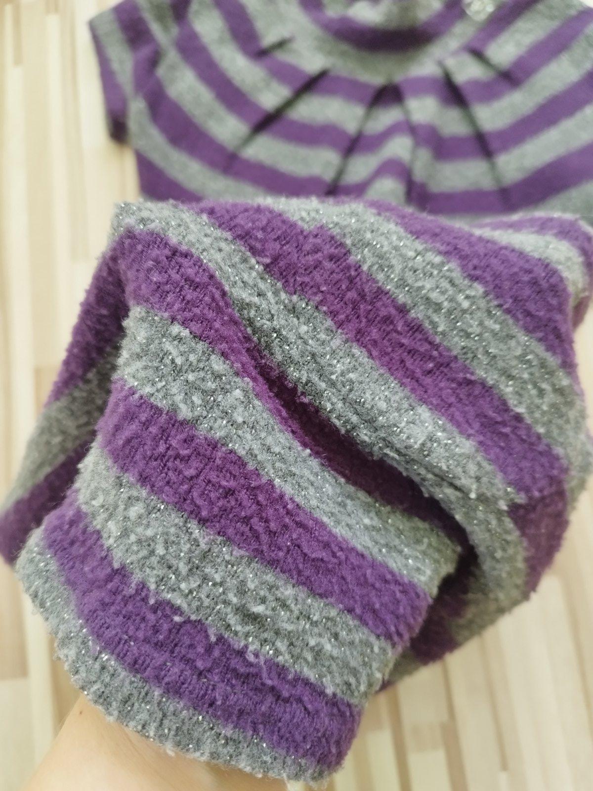 Predám pre dievča vo veku 9-10 rokov pulovrík s dlhým rukávom a s bolerkom a vzadu kapucňa,fialovej farby, páskovaný vzor.Mierne predĺžený, materiál-úplet.Málo nosené,ako nové. Cena je 4 + poštovné.