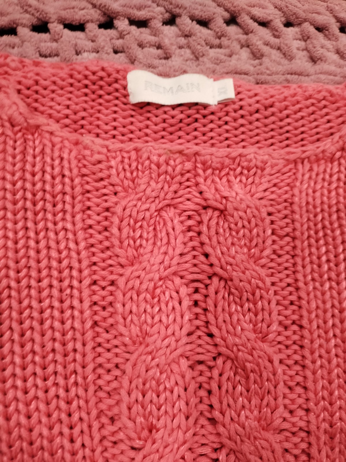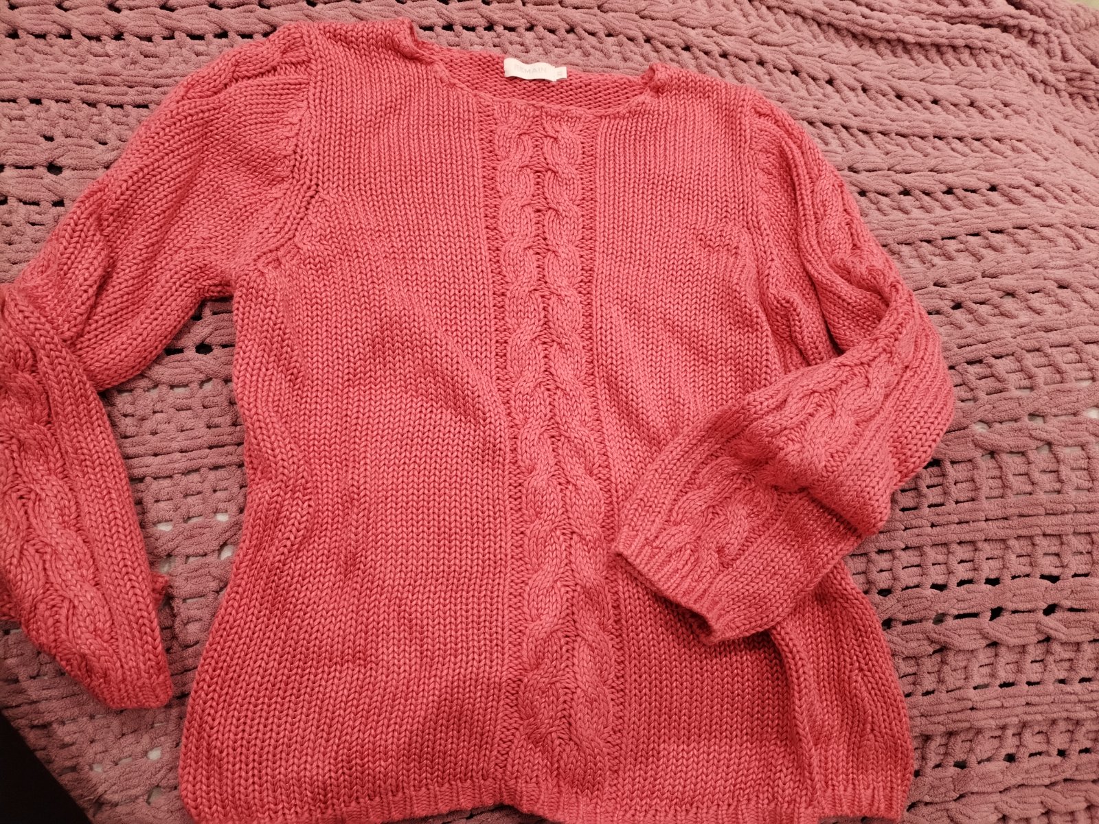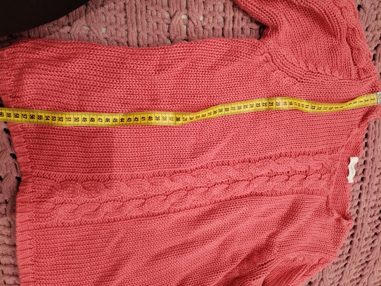 Farba skôr lososová, svetrík noseny,ale isto ešte poslúži. Cez prsia 96 cm vklude. Cena 4 eura plus pošta