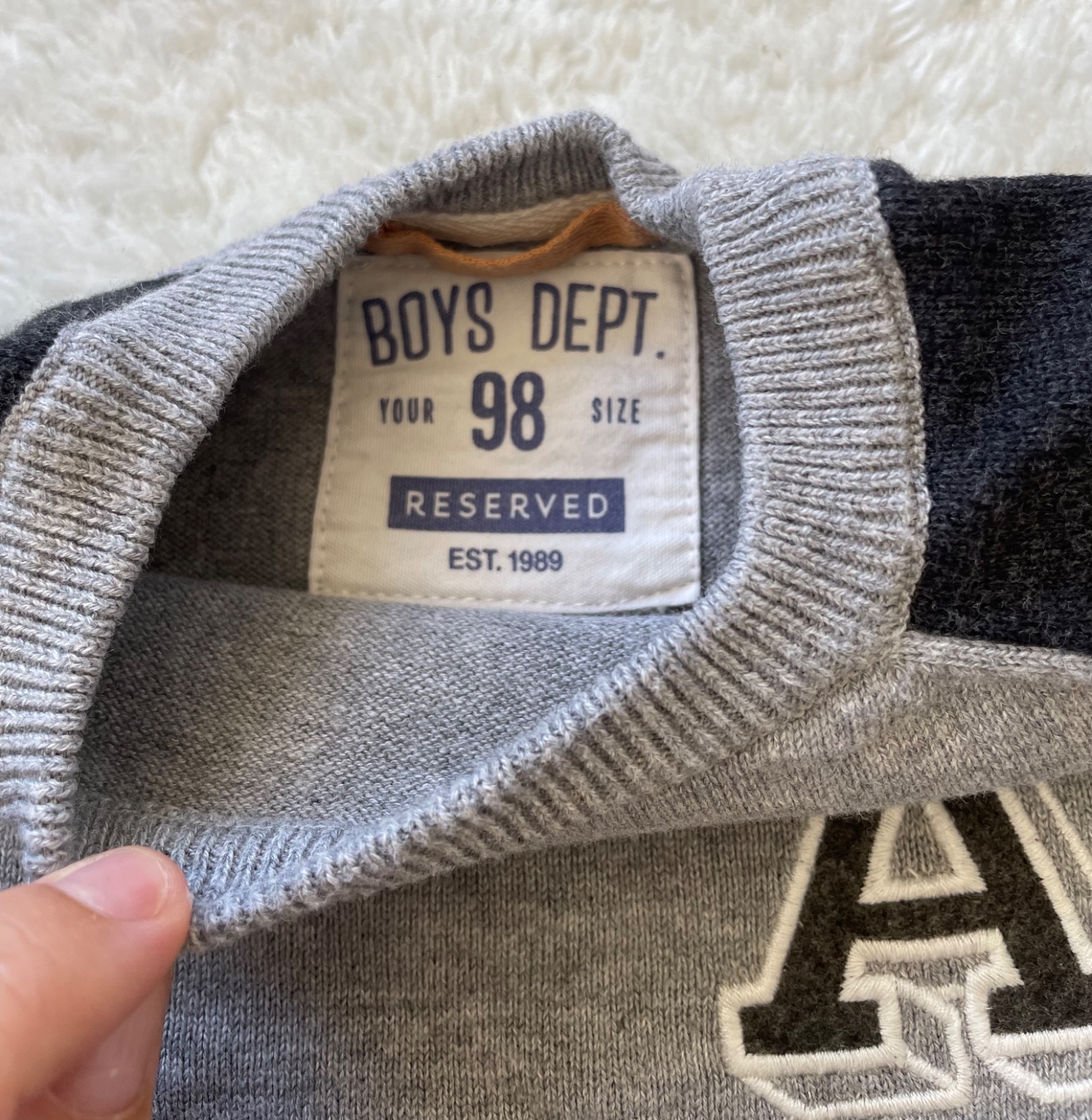 Svetlosedy pleteny svetrik v kombinacii s ciernymi rukavmi, s frajerskymi nasivkami, uplne novy