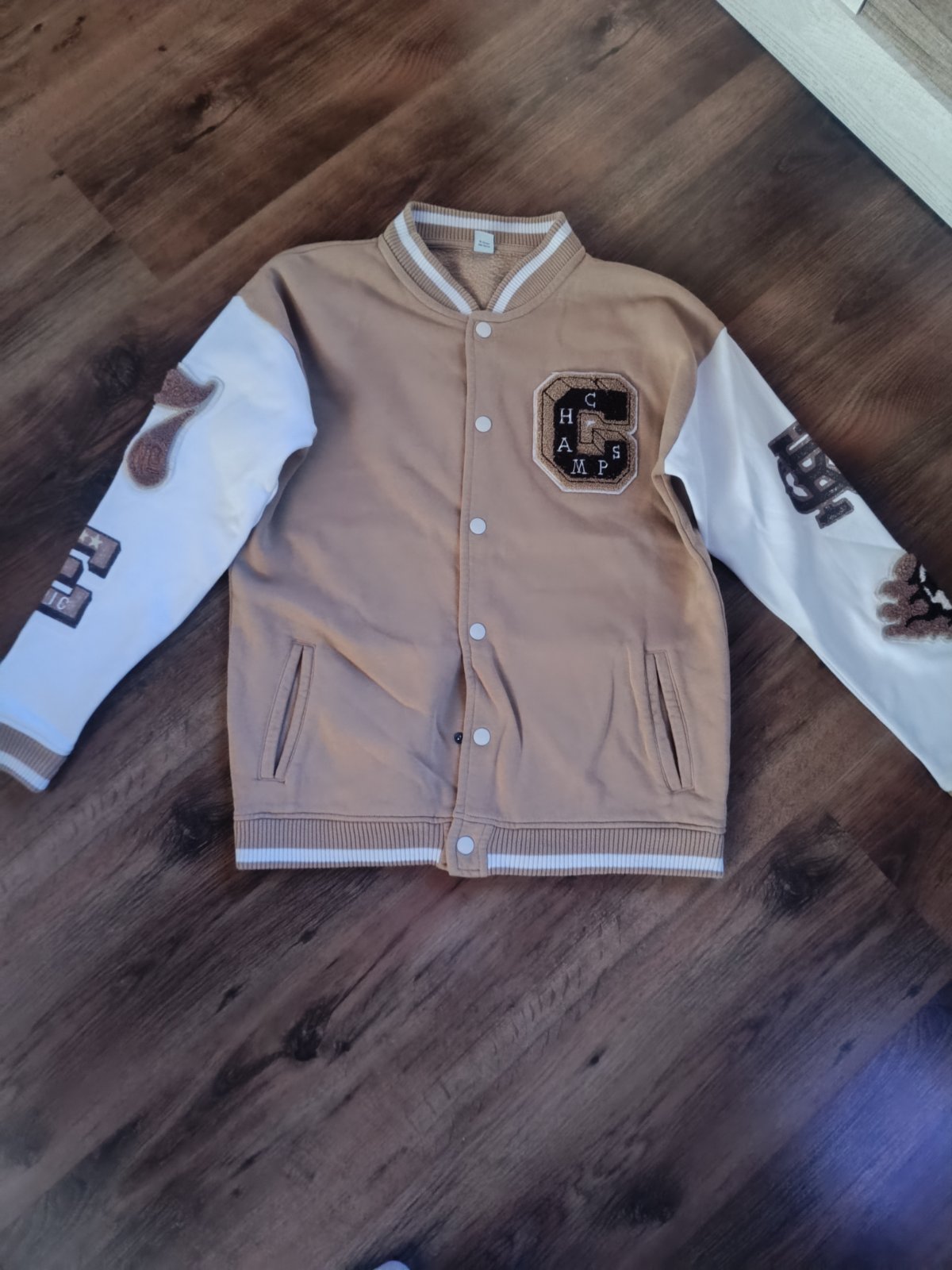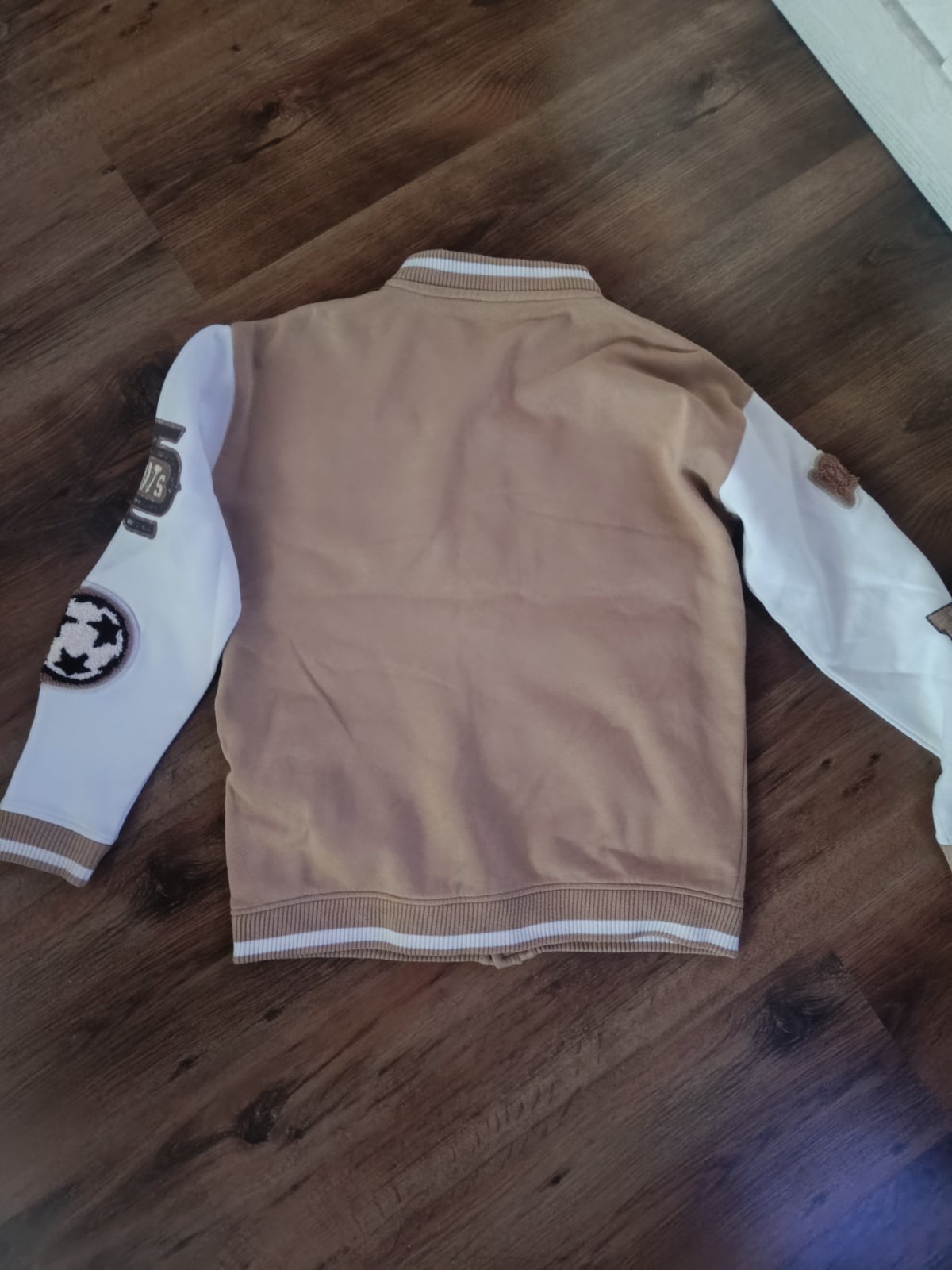 Pekná zachovalá mikina na 8 rokov so stredovým vačkom a kapucou. Rozmery dlžka 48, š. 40 a rukáv od pleca 43 cm.