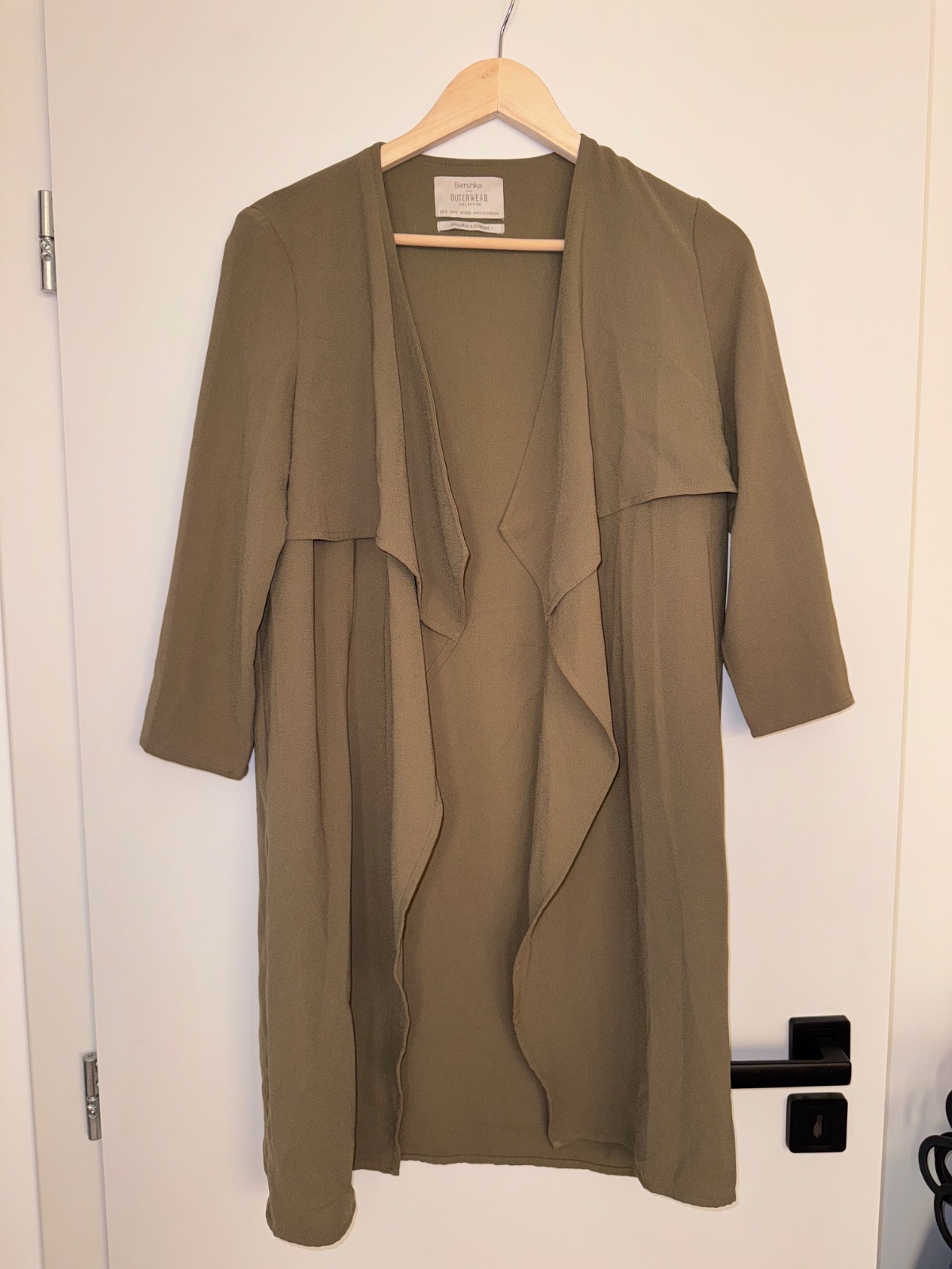 Vesta Bershka bez zapínania, s vreckami Dlzka 87cm Nepremeriavam, nefotím na postave, ďakujem za pochopenie. Cena bez pošty.