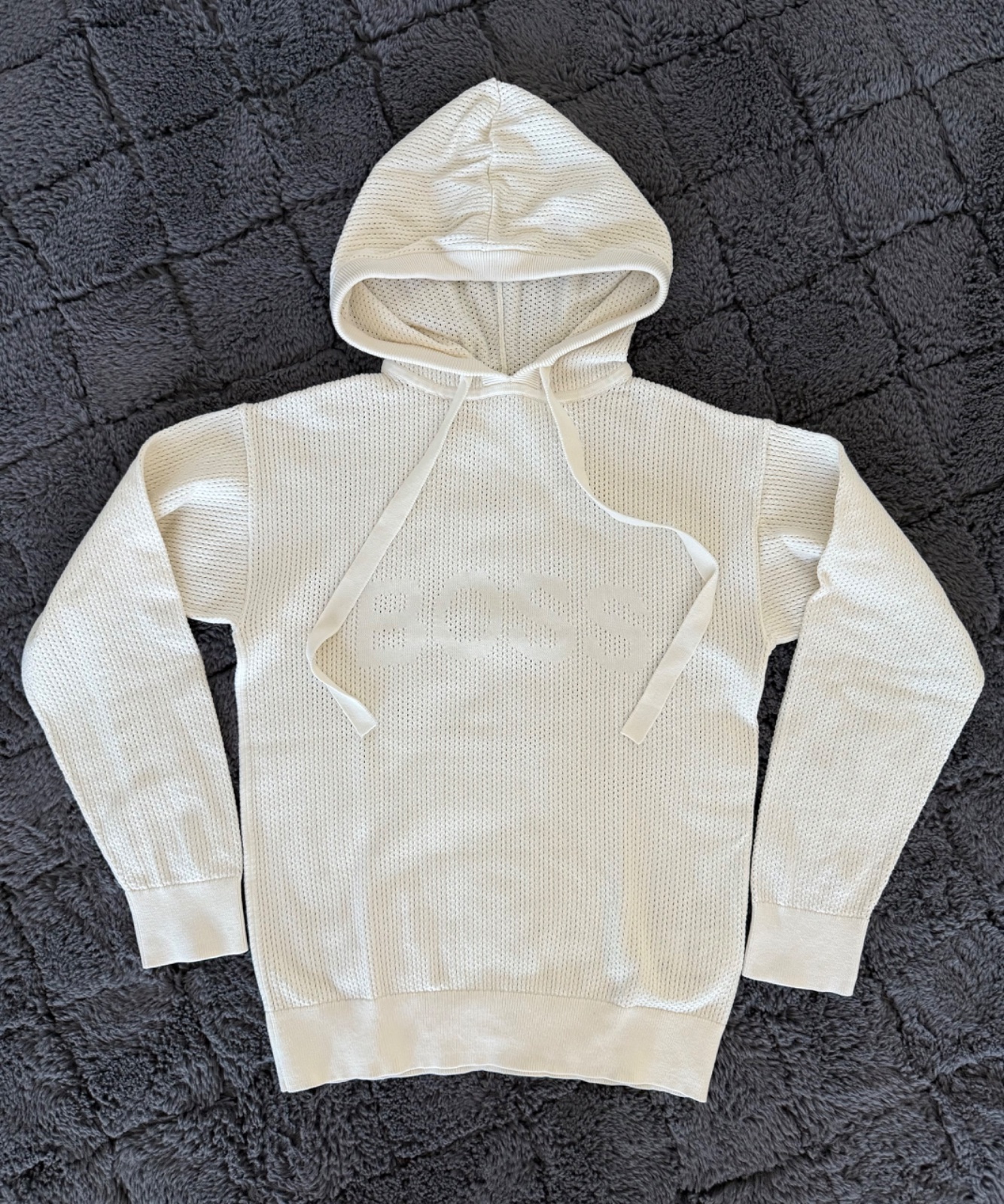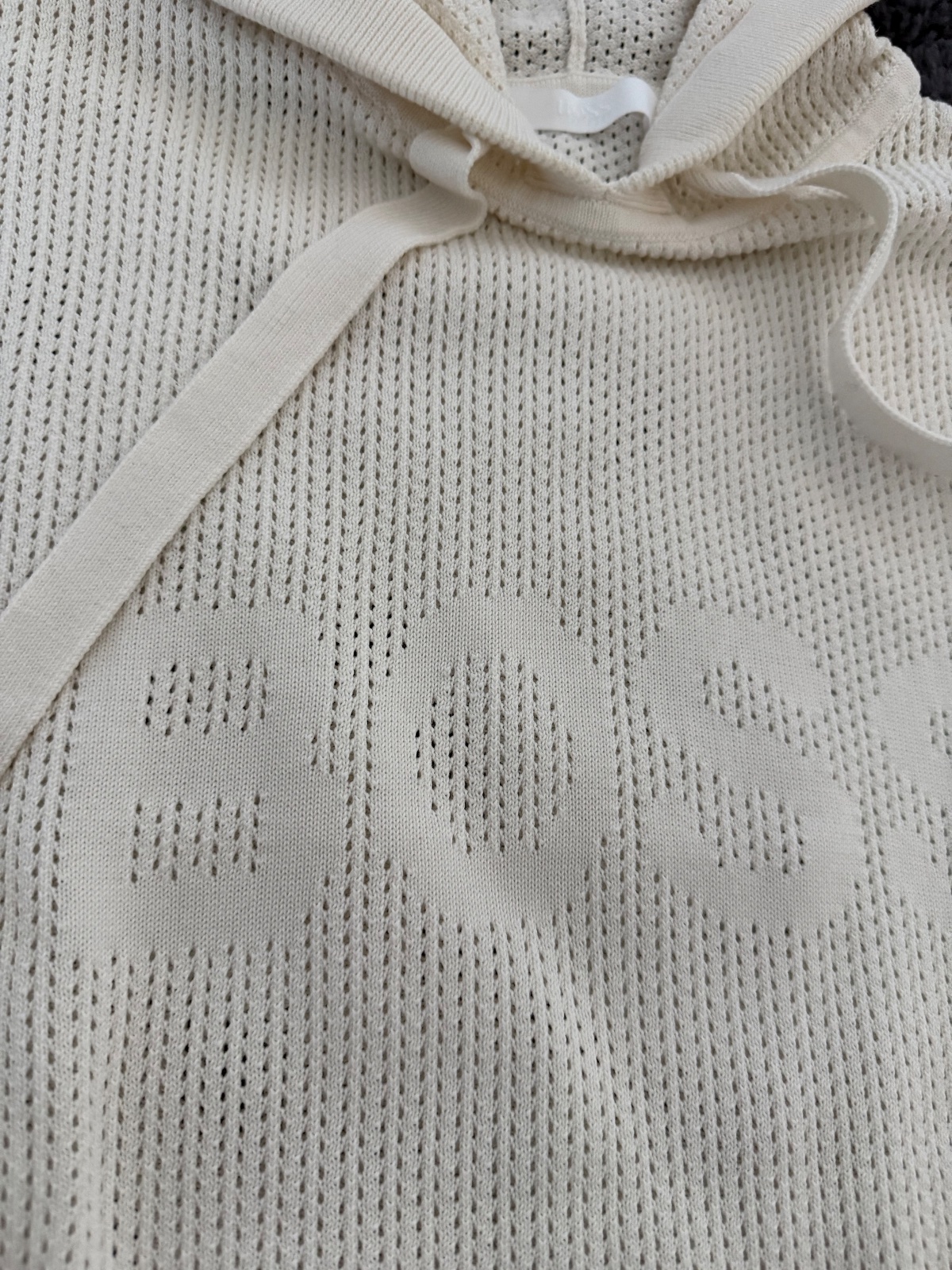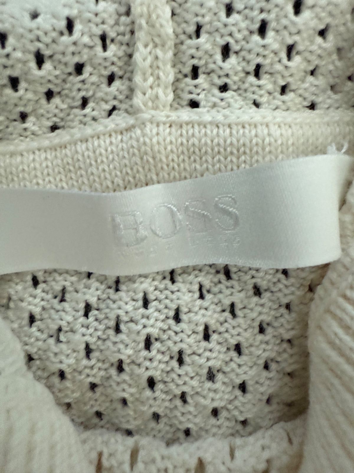 Zaujímavý dámsky sveter s kapucnou Hugo Boss. Svetlučko krémová, maslová farba. Ako nový. Oblečený vyzerá TOP😊 Velkost M. PC:119,-€