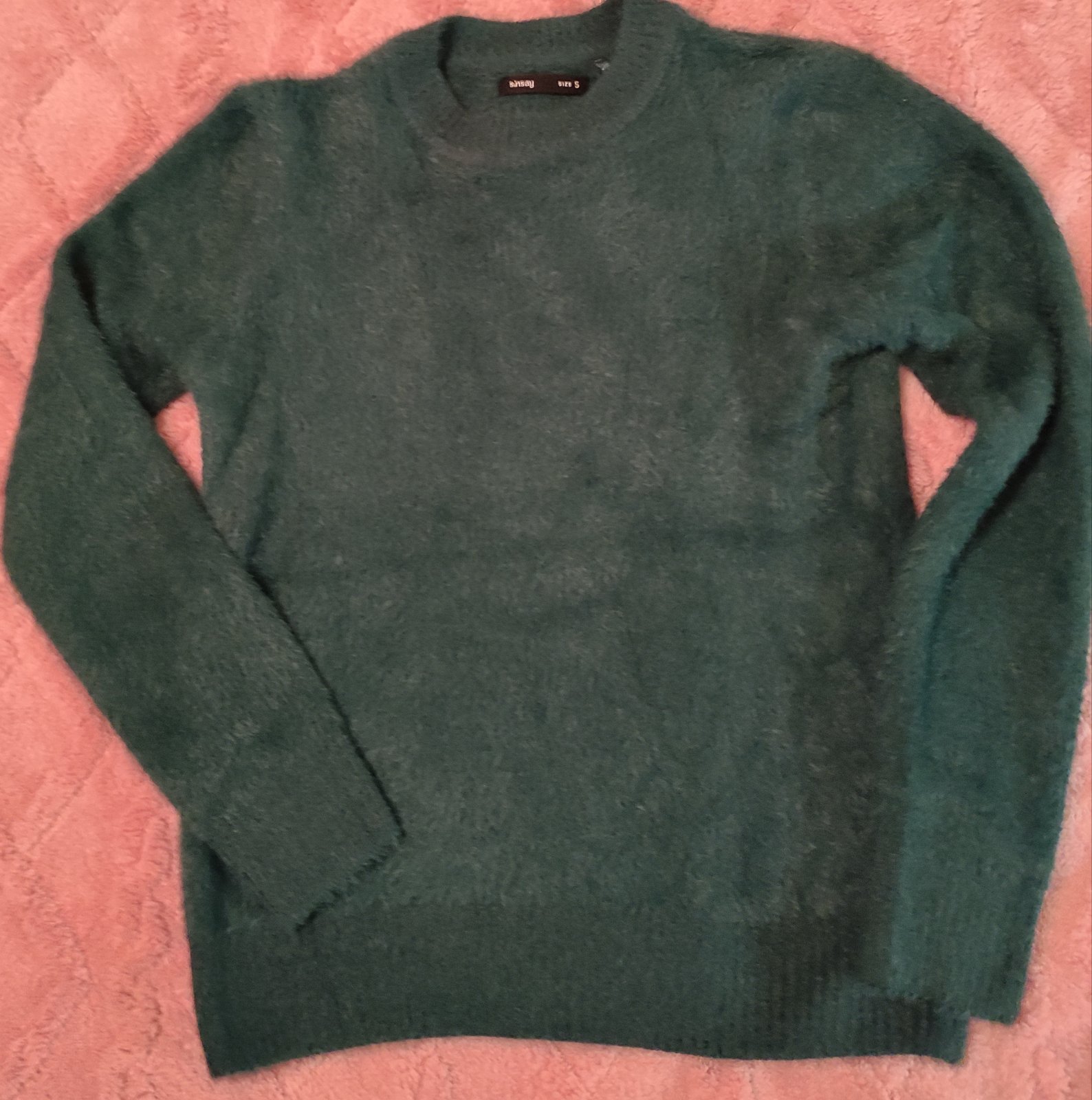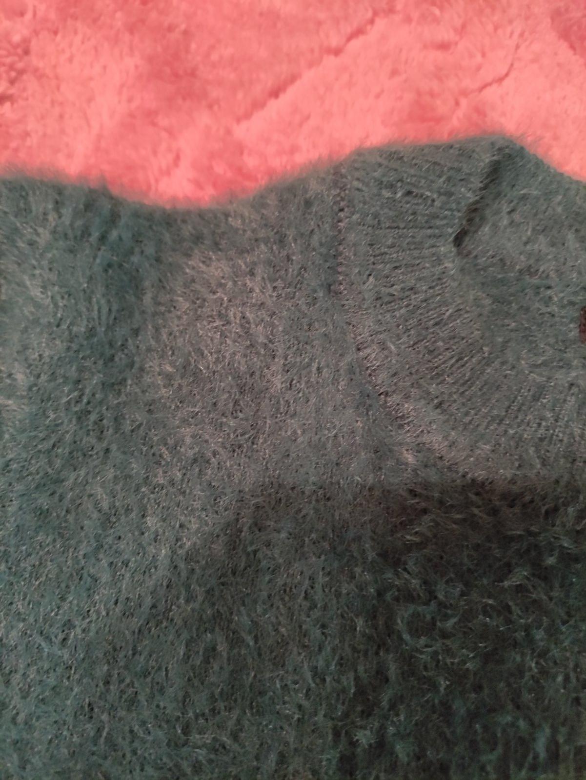 Svetrík zelenej farby so striebornom niťou v dobrom nosenom stave. Dĺžka do pása. Na oziadanie premeriam.