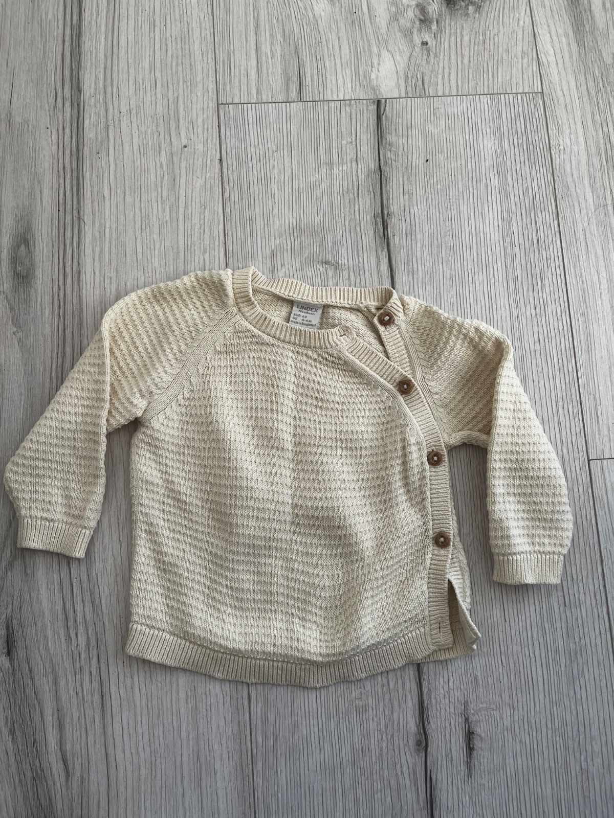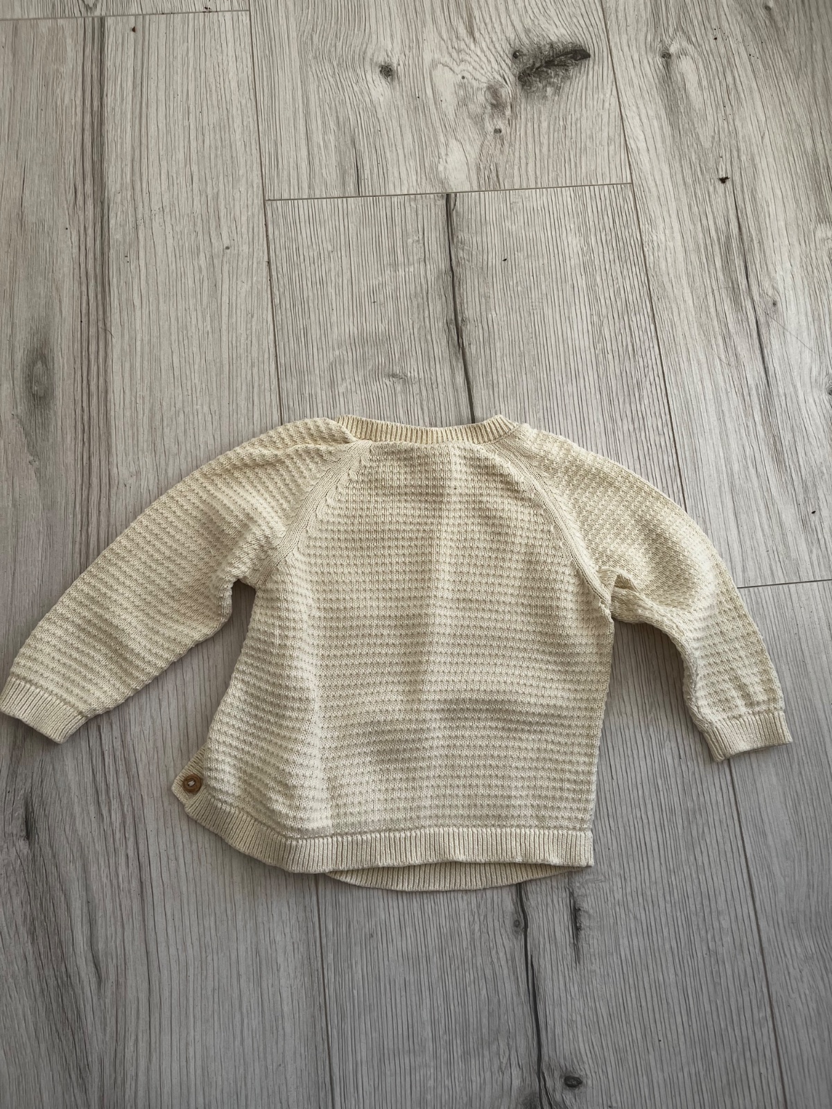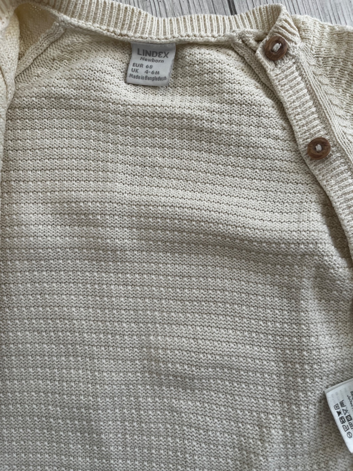 Predám tenký krémový svetrik so zapínaním na gombíky značky Lindex, veľkosť: 68 (4-6 mesiacov).