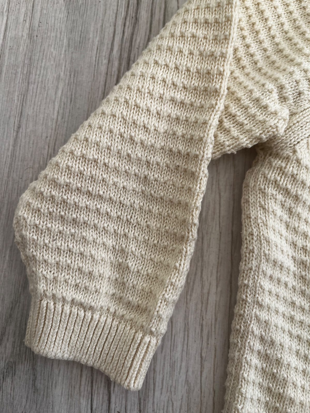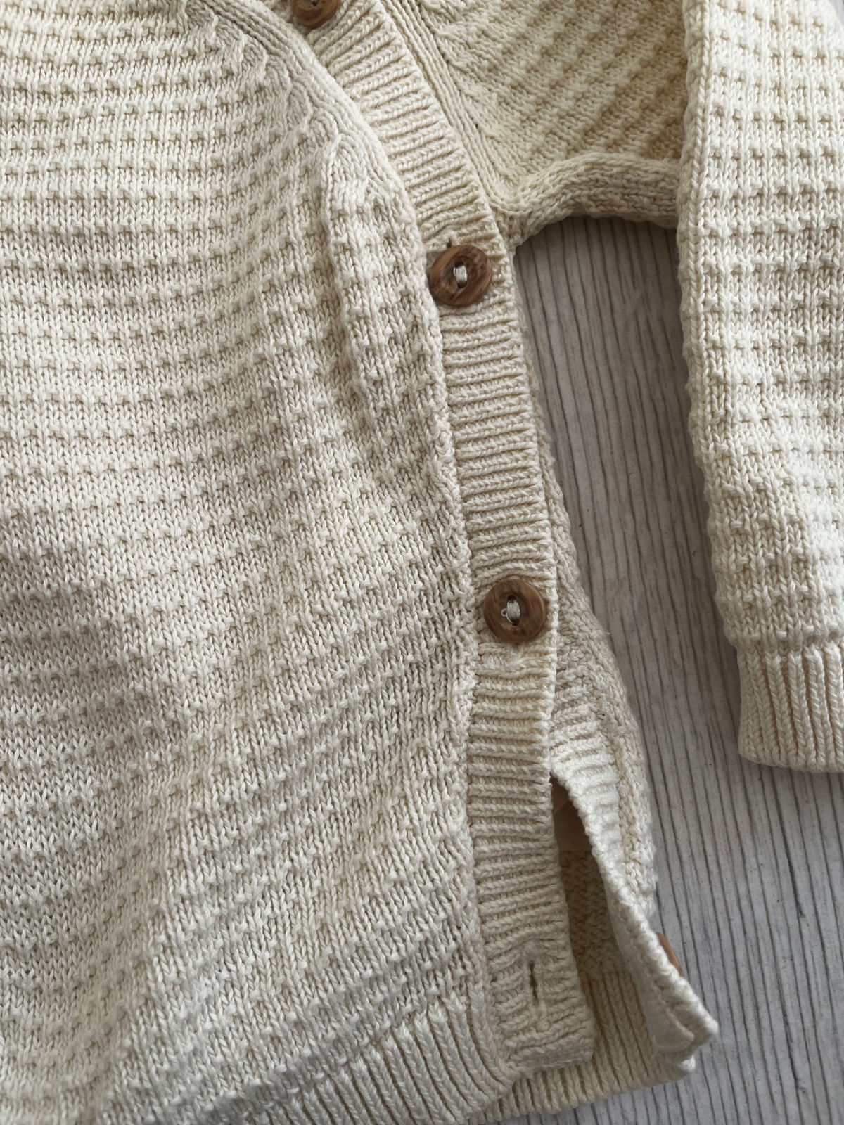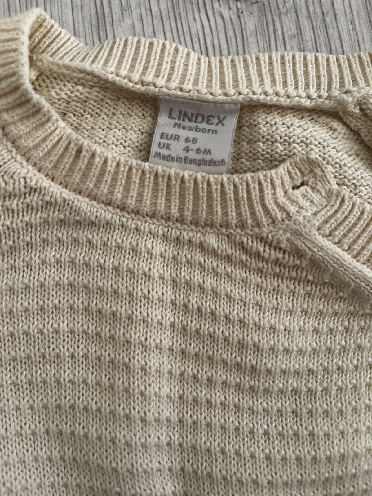 Predám tenký krémový svetrik so zapínaním na gombíky značky Lindex, veľkosť: 68 (4-6 mesiacov).
