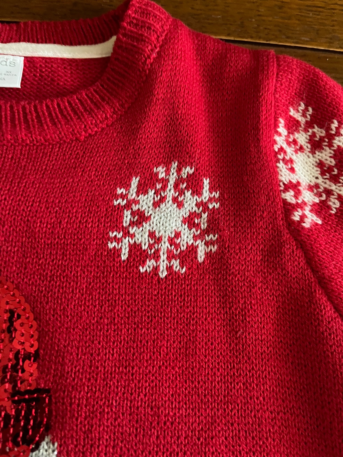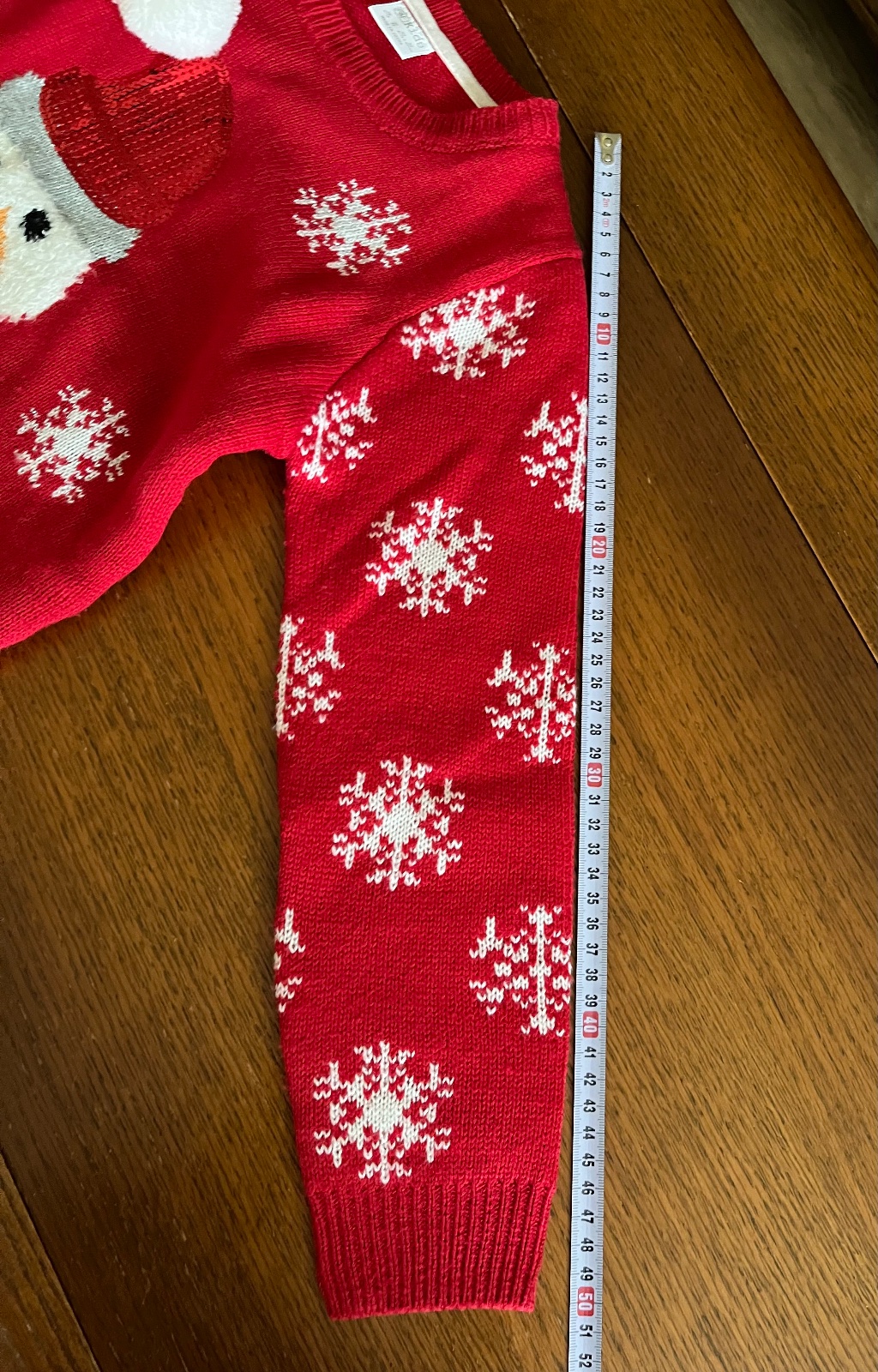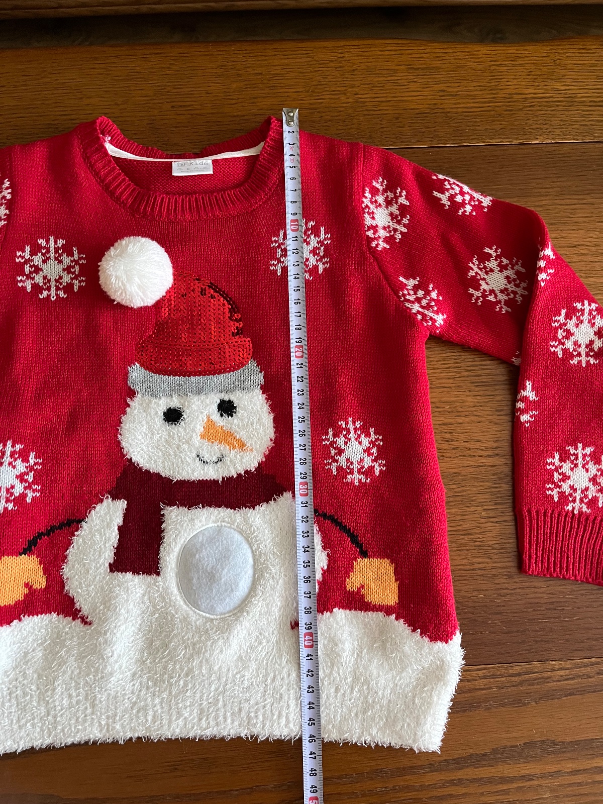 Super stav, párkrát oblečený pulóvrik so snehuliakom. Pekné 3D detaily brmbolcov, šálika, čiapky, kombinácia viacerých druhov pleteniny.