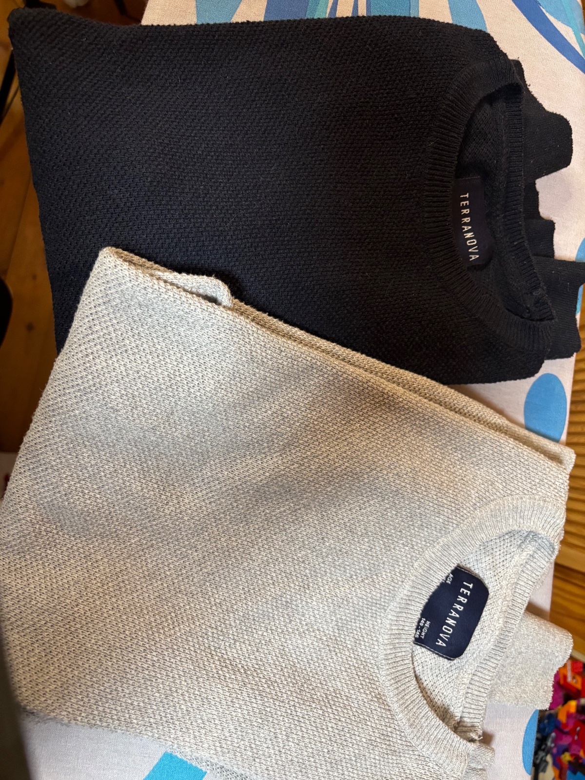 Predám krásne dva pulovre zn.Terranova, veľkosť 140-146. Minimálne nosene, max.2x oprane. Top stav. Cena spolu 9€