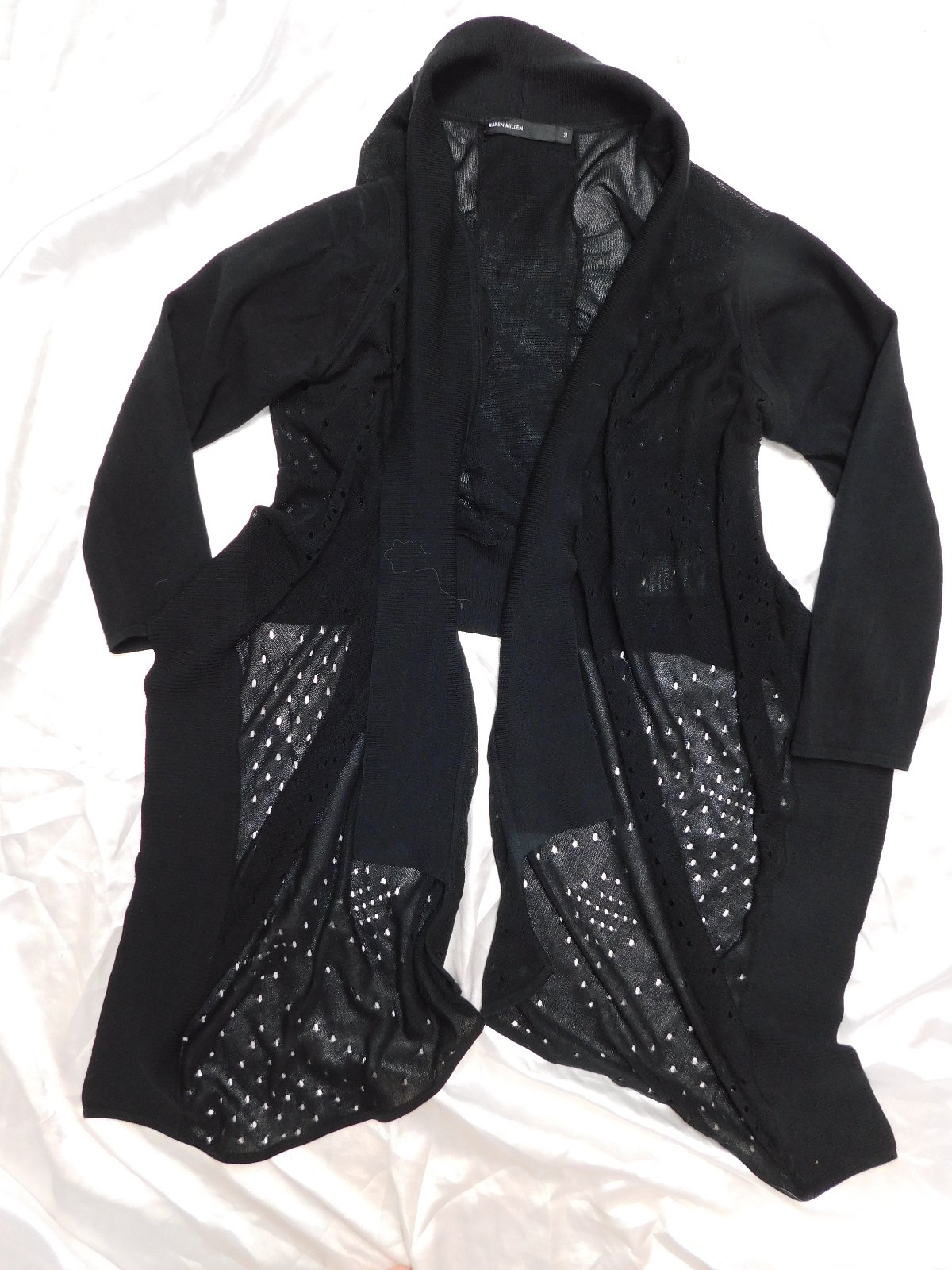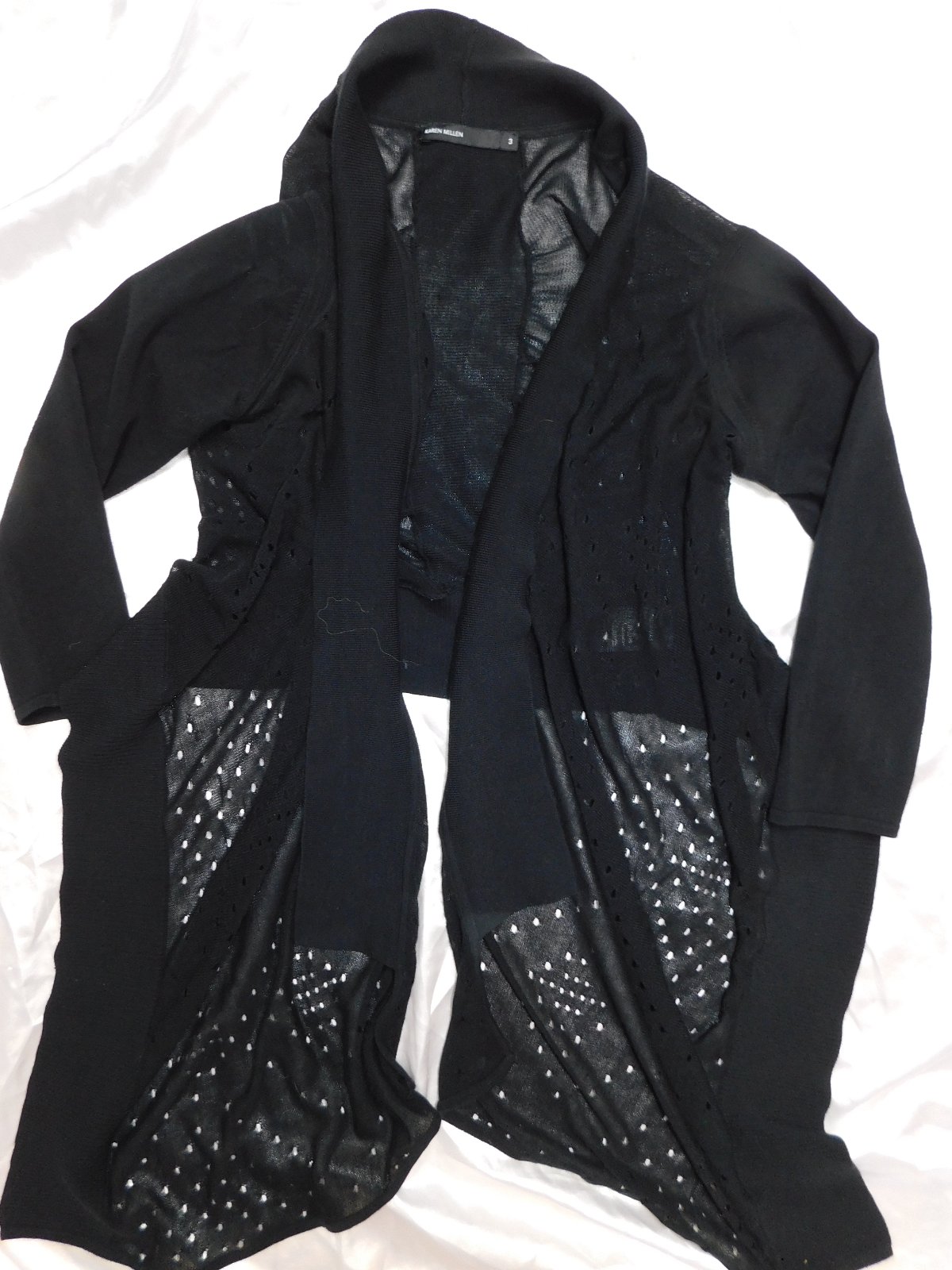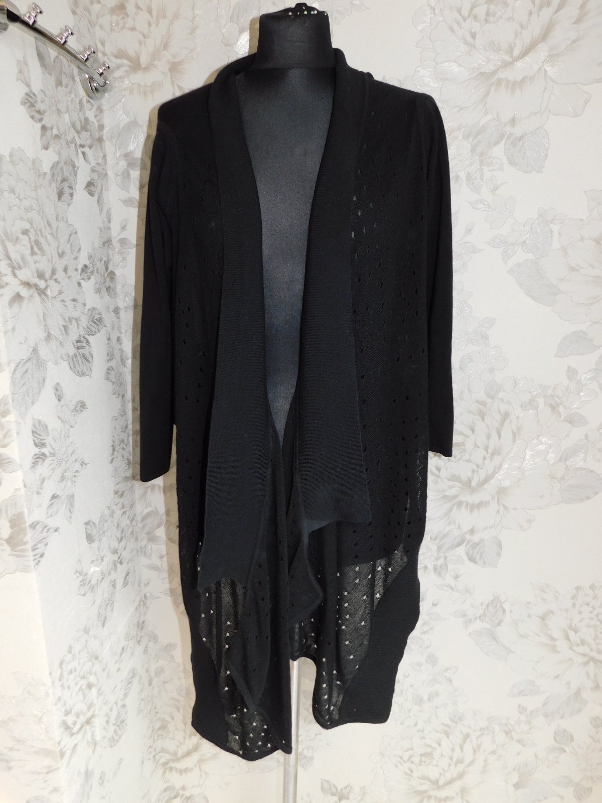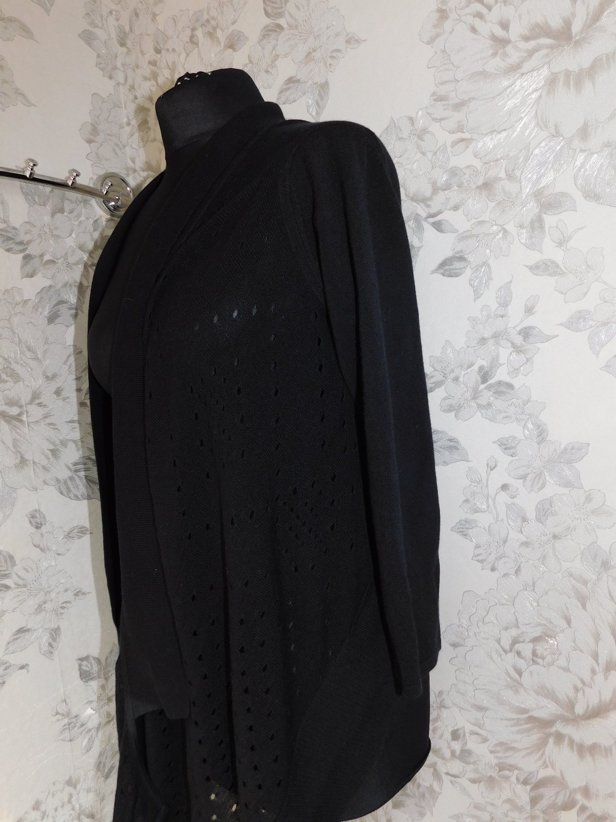 KAREN MILLEN Luxusny damsky pleteny sveter/kardigan bez zapinania čiernej farby.59%viskoza,41%cotton.super stav. se32