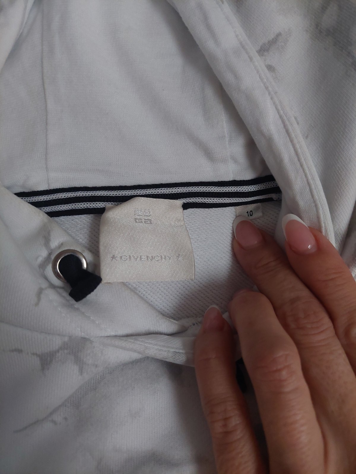 Teplá mikina. Nosená