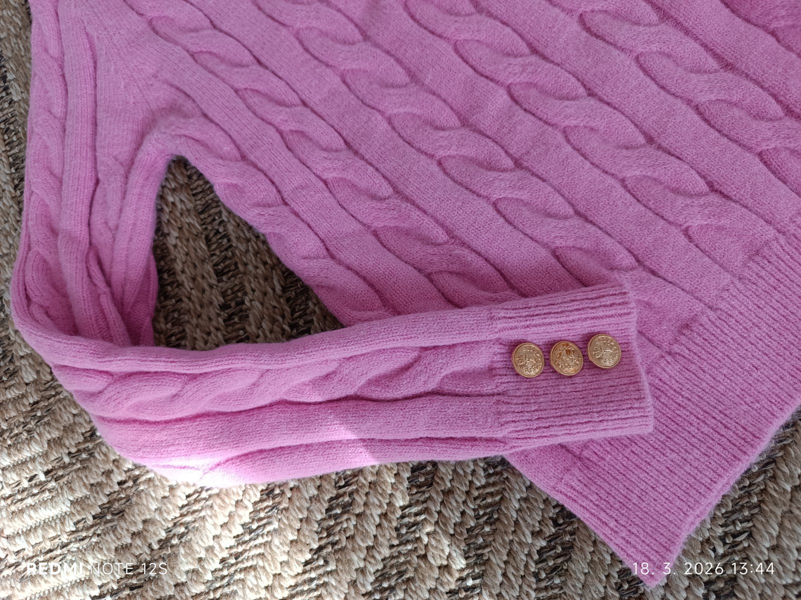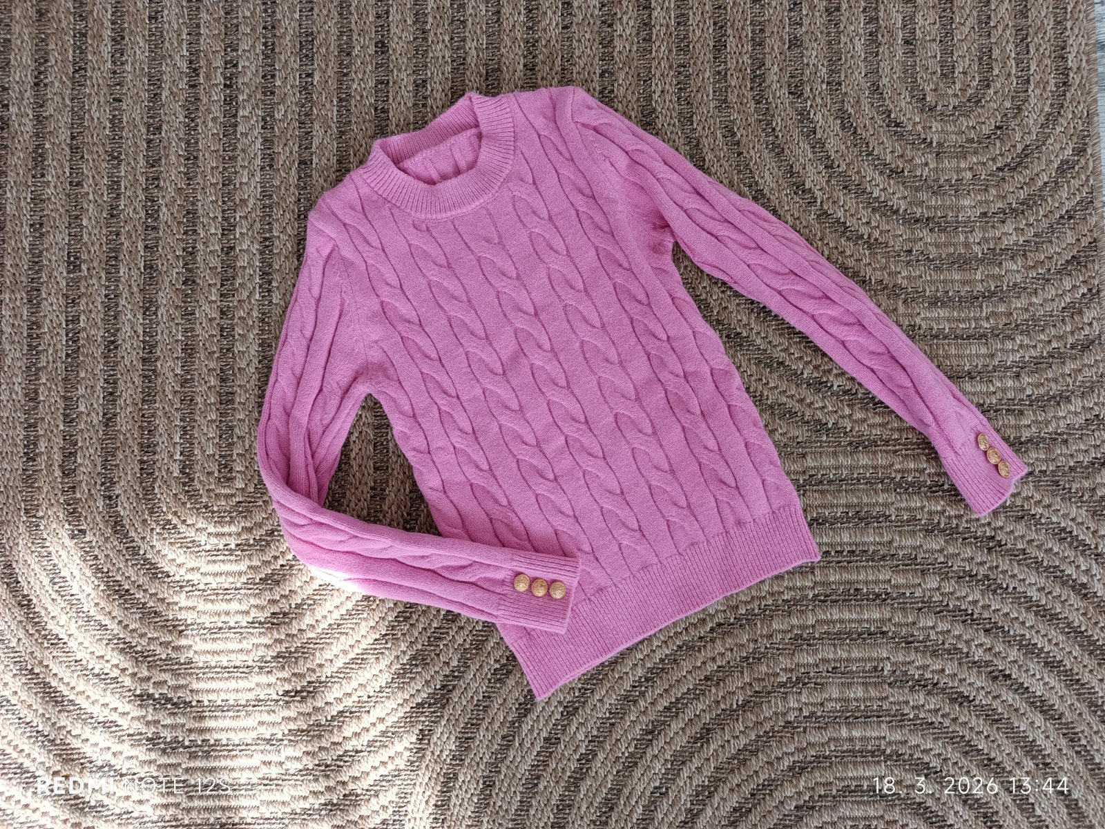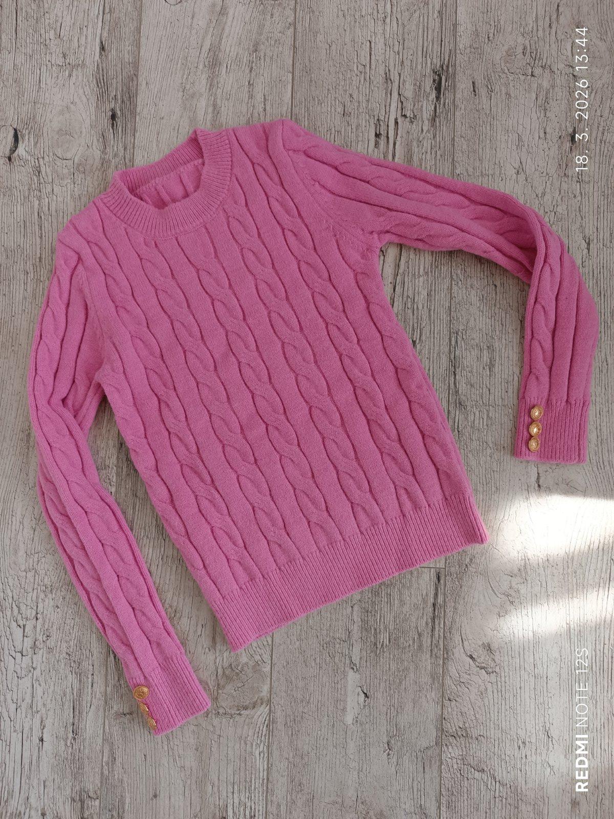 Svetrík je teplý, krásna cukriková farba,na rukávoch má gombíky, je pružný. Nenosený, štítok som odstrihla