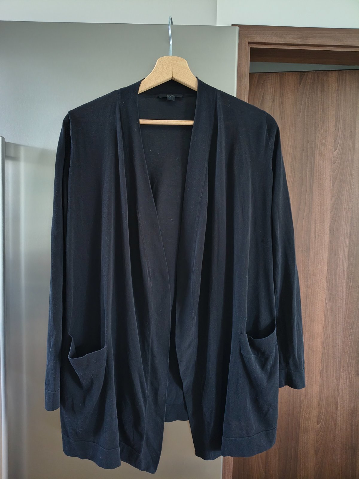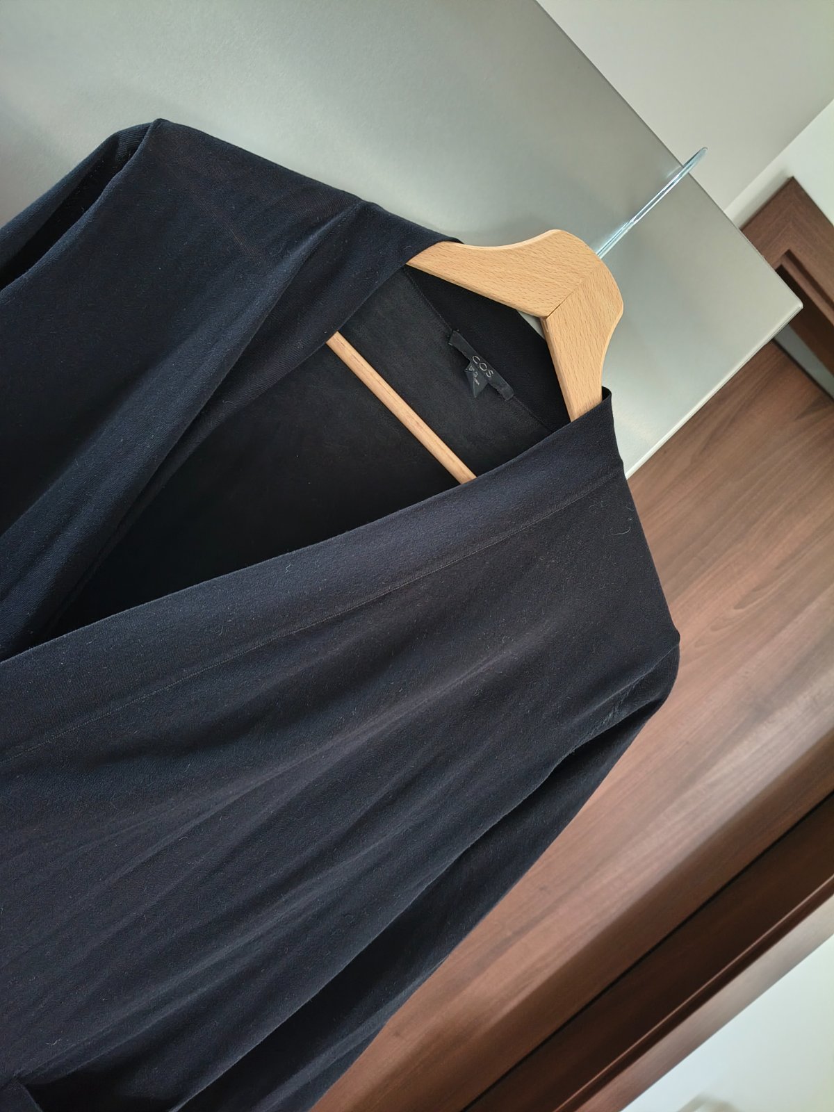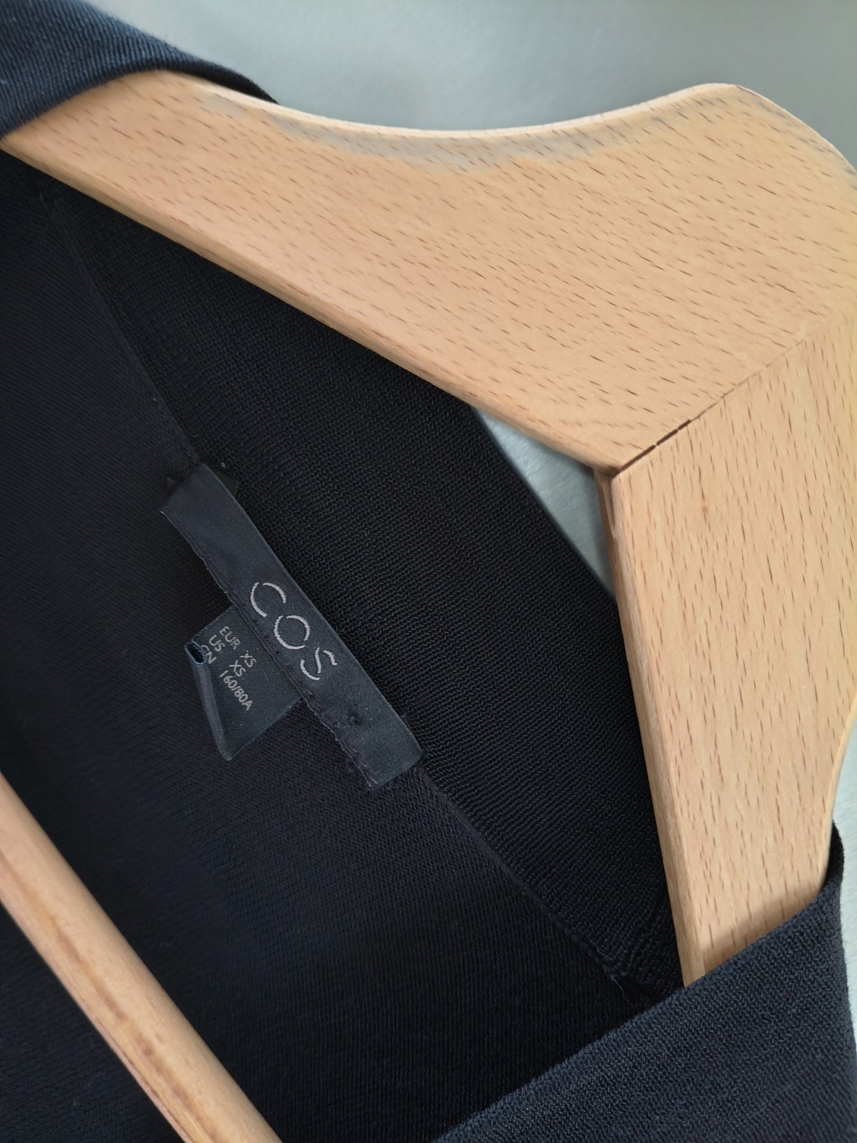Veľkosť písaná XS, sedí pekne na veľkosť S,aj M, príjemný tenší bavlnený materiál, super na jar leto 😉👍 100% krásny stav,na bokoch má vrecká ,bez zapínania.Farba tmavo modrá až do čierna,na prvý pohľad je čierny