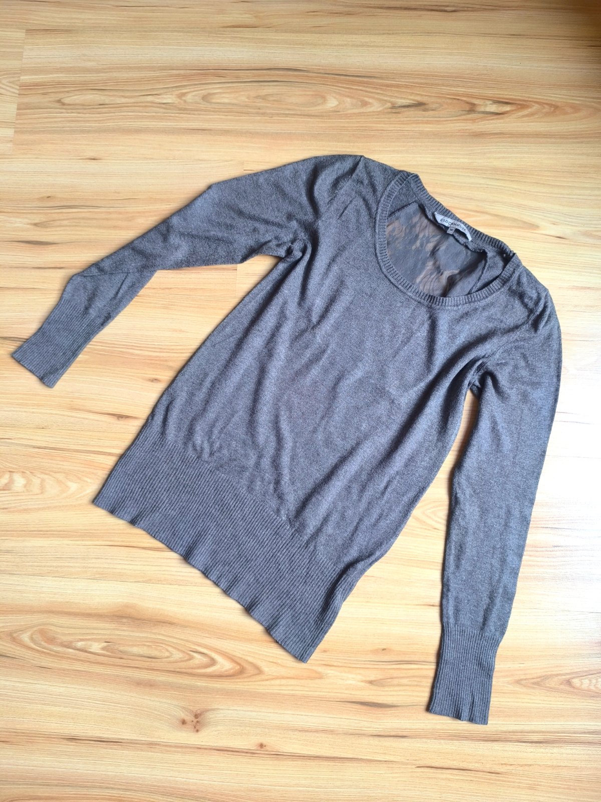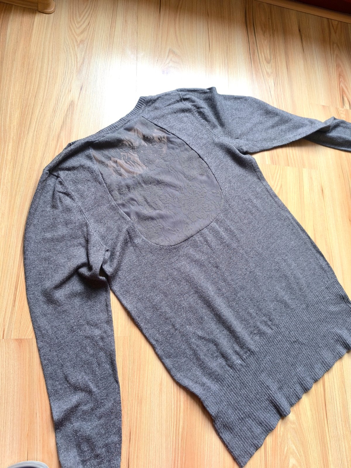 Šedý sveter s krajkou na chrbte zn. CLOCKHOUSE