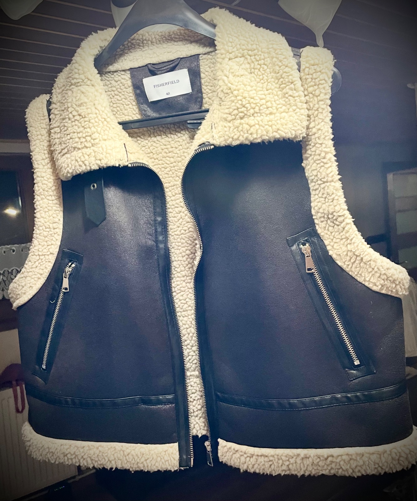 Vesta bola nosena malo, dlzka je tak pod prsia, velkost pisana 42 ale sedi na S, je v top stave