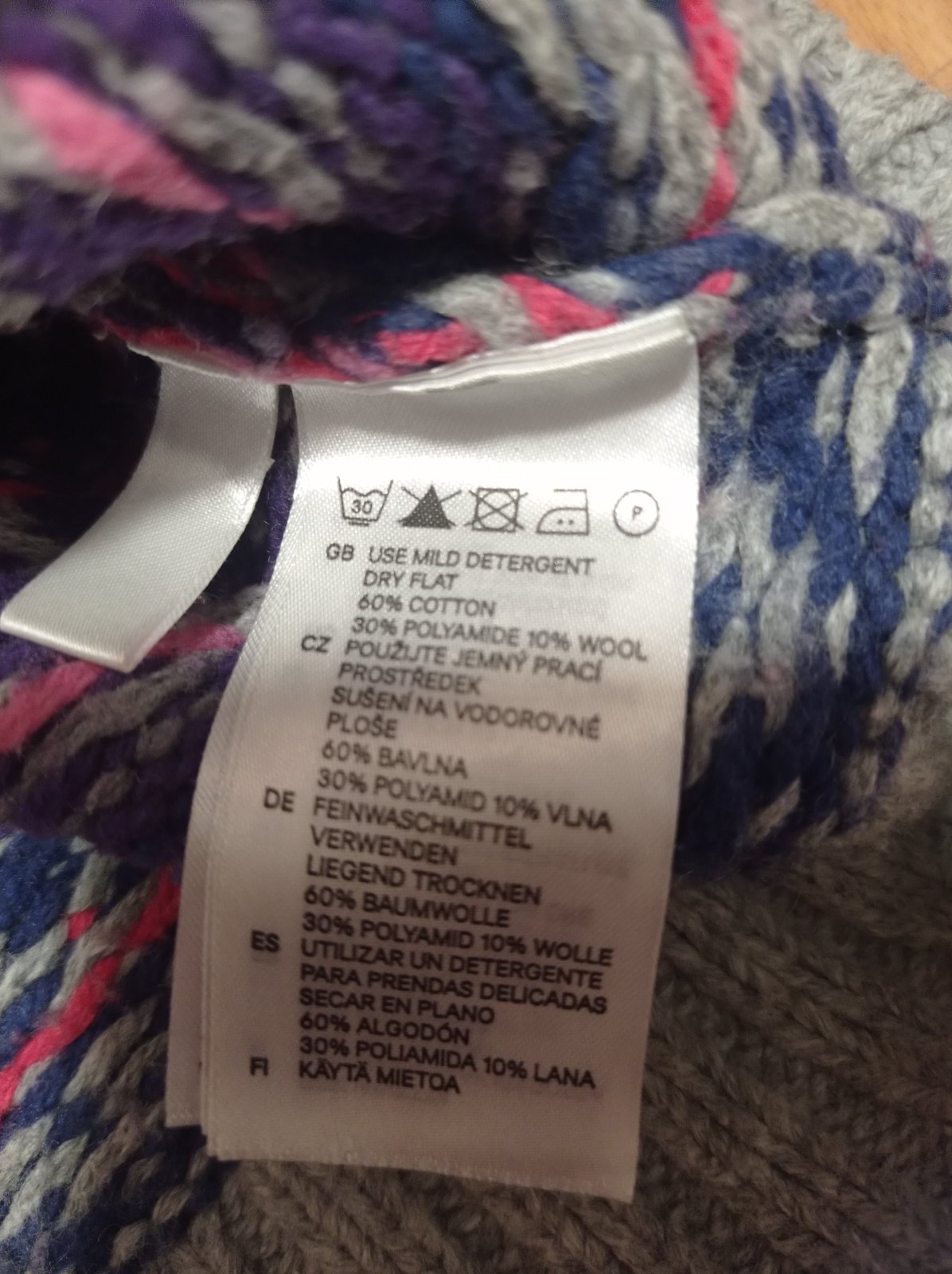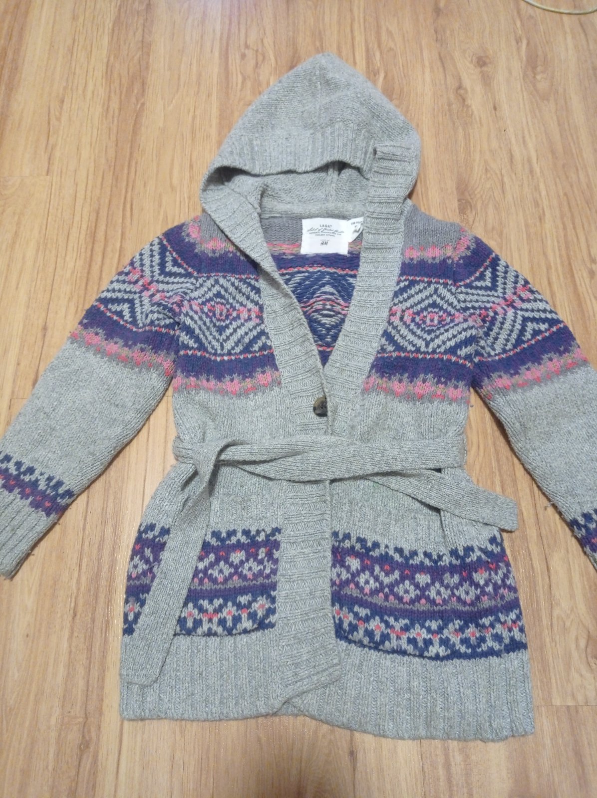 Teply sveter, predlzeny, zapinanie na 1 gombik. Rukav od krku:47 cm, dlzka:53 cm. Zmolky sa najdu. Inak velmi dobry noseny stav.