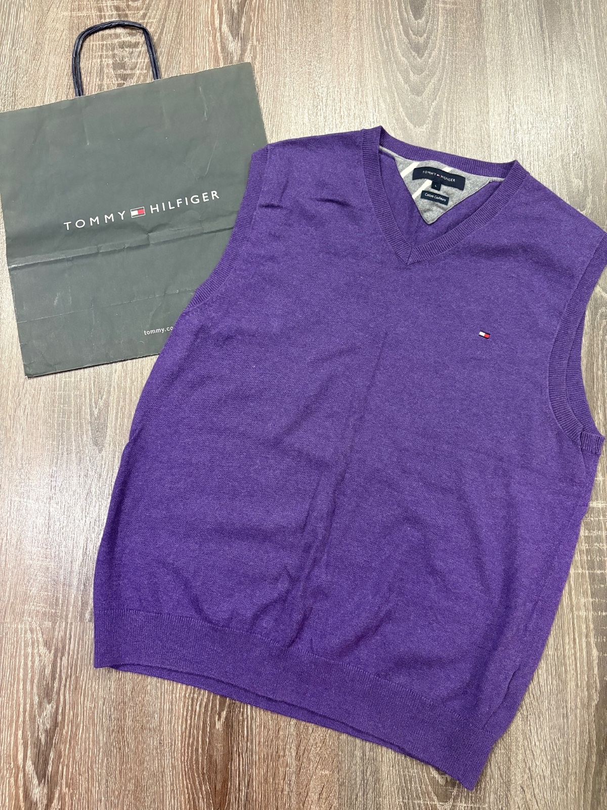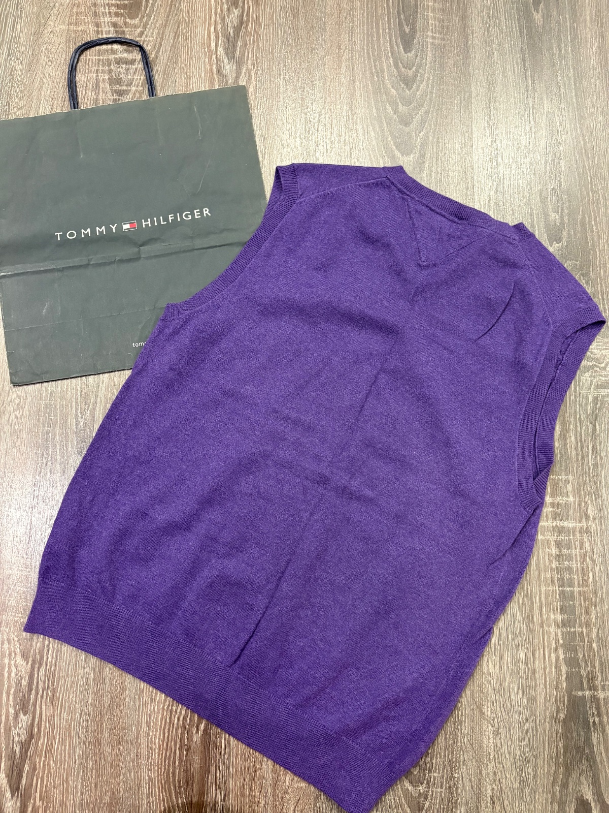 99.Tommy Hilfiger panska kašmírova vesta bez rukavov,velkost L,krasna fialova farba.Dlzka je 67cm a sirka v podpazusi je od 53x2cm do 65x2cm