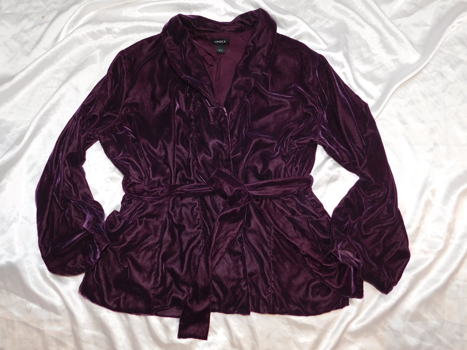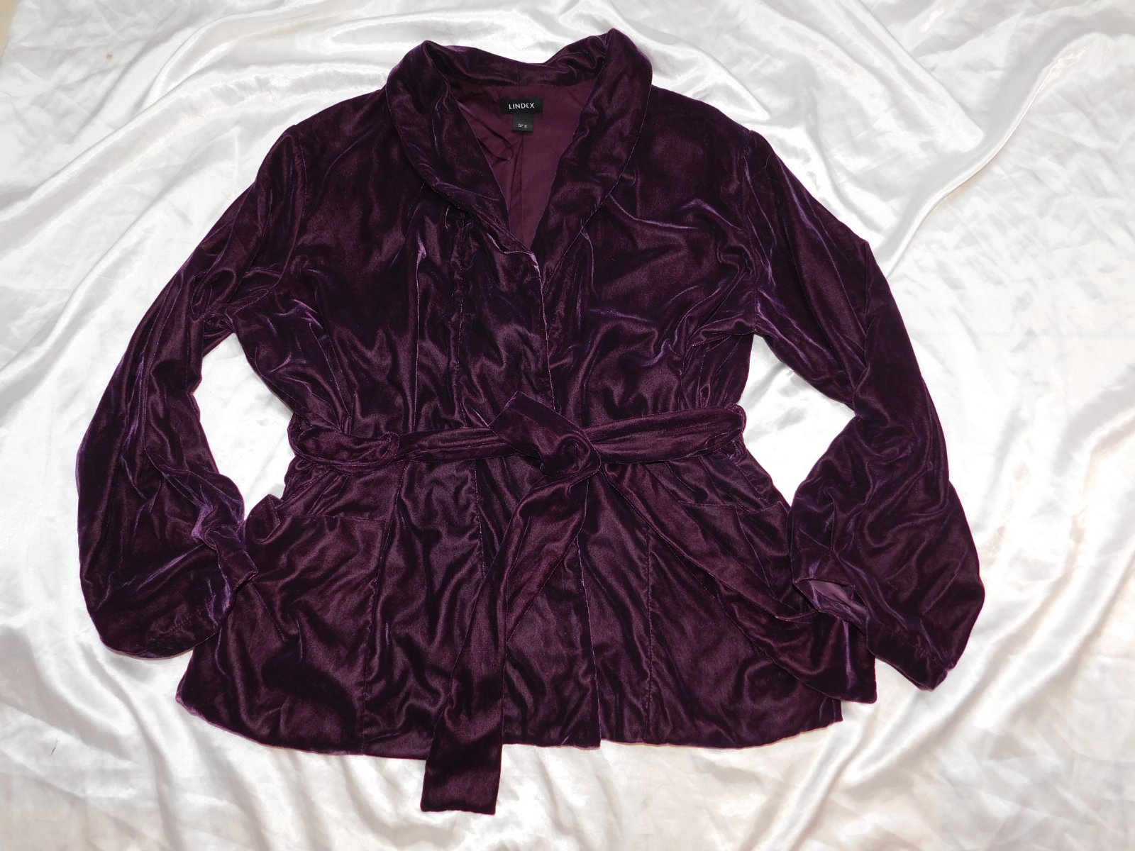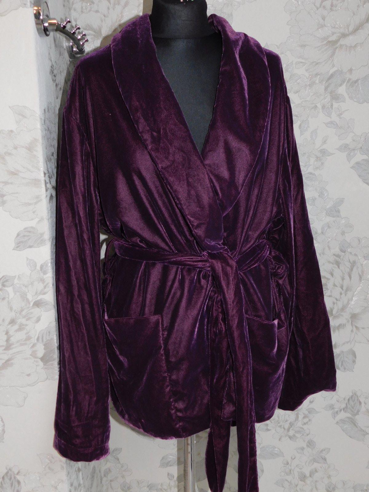 LINDEX Zamatovy kardigan fialovej farby,bez zapinania,s podšivkou.1 krat oblečeny,ako novy. 100%polyester. se38