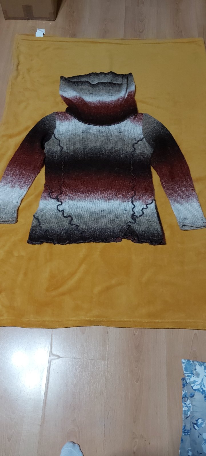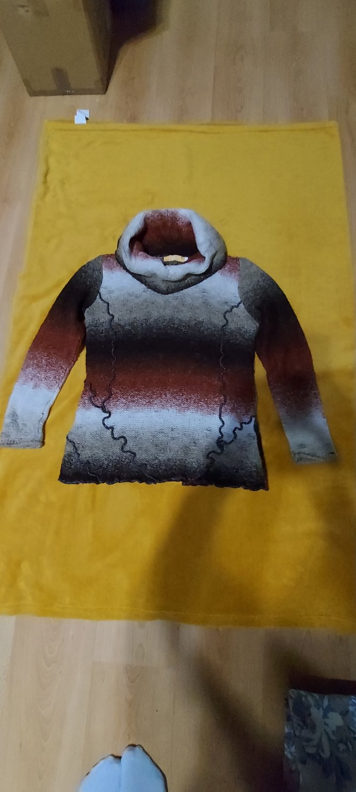 Predám krásny melirovaný sveter s veľkým golierom. Veľkosť M ,dĺžka 70 cm, šírka pod pažami 108 cm . Cena plus pošta ,posielam aj paketou.