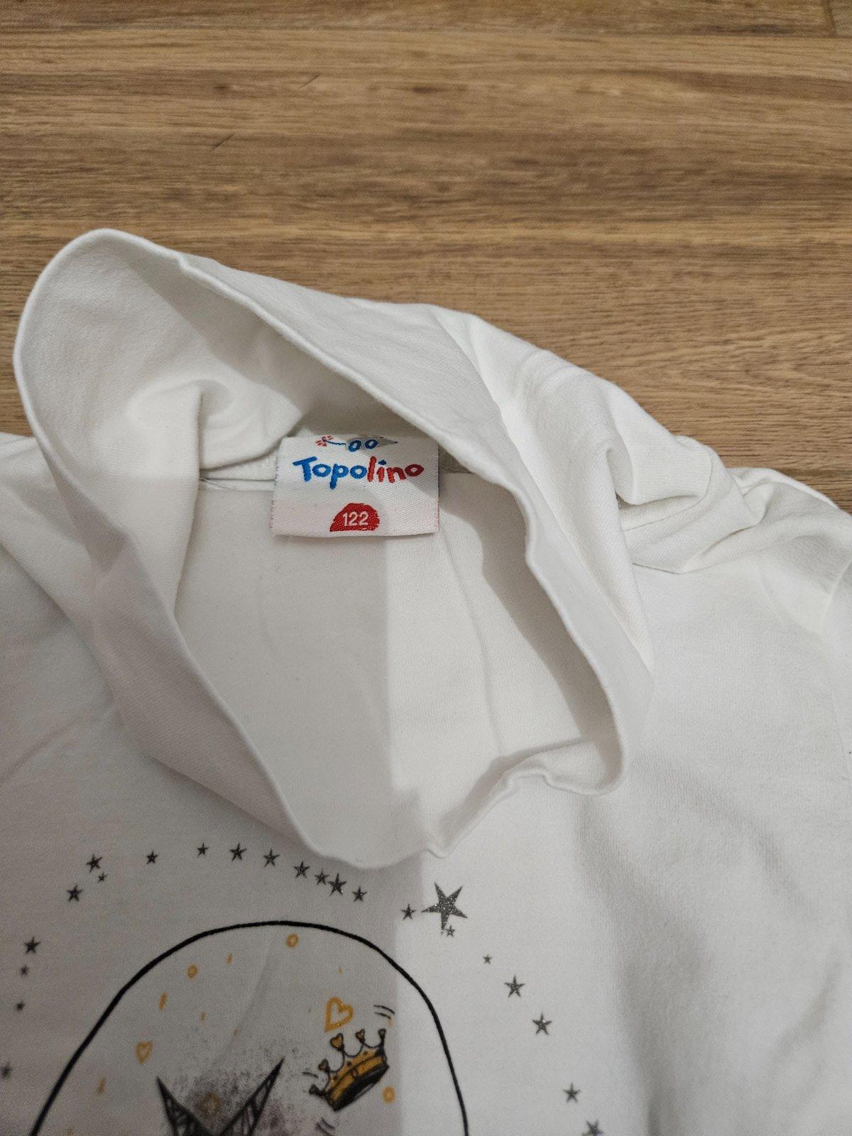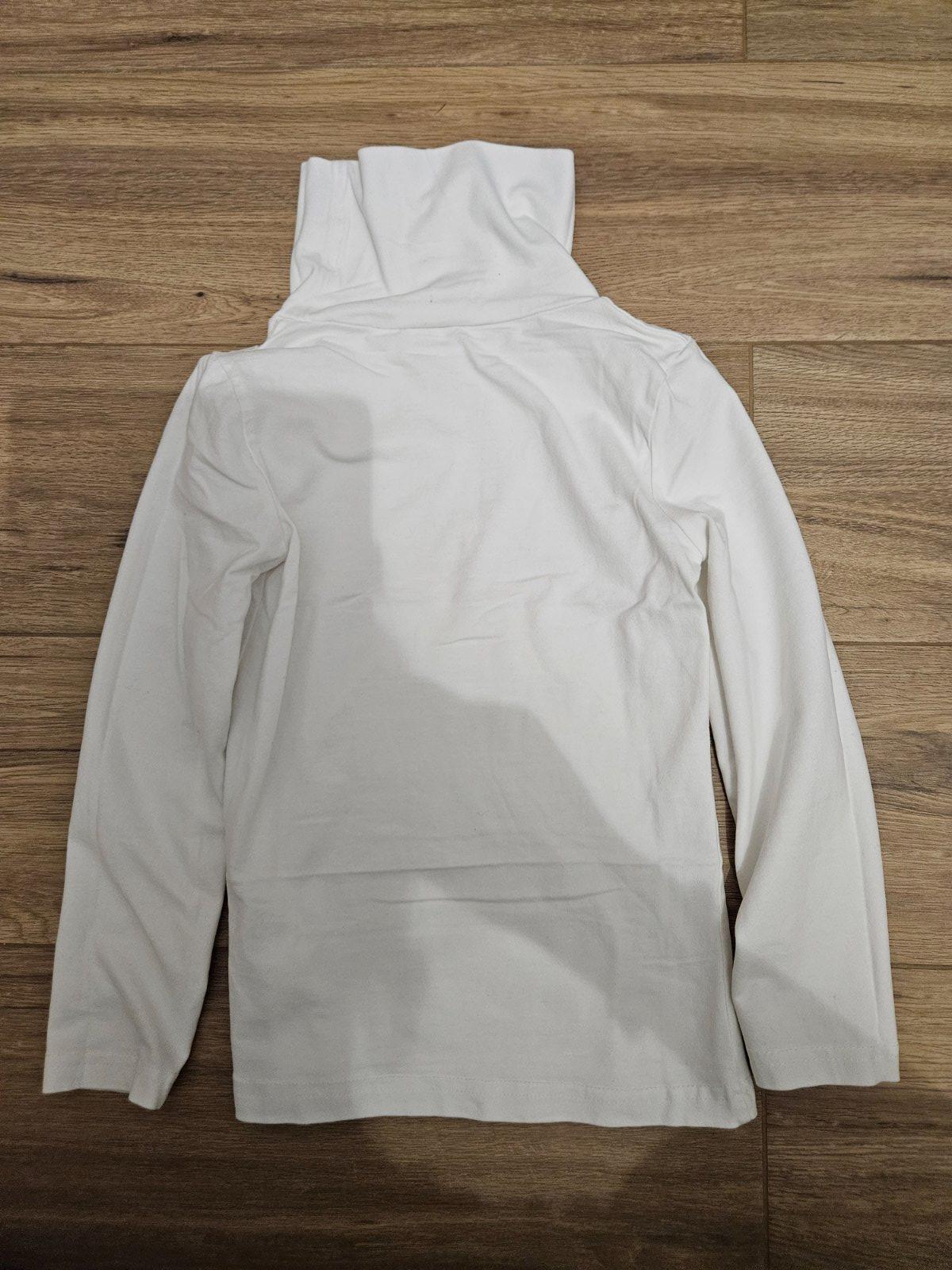 Biely bavlnený rolák s riasením na krku je pre 6-8 ročné dievčatá. Nemá fľaky, poškodenia. Celková dĺžka od pleca je 44 cm, dĺžka rukávu od pleca je 48 cm.