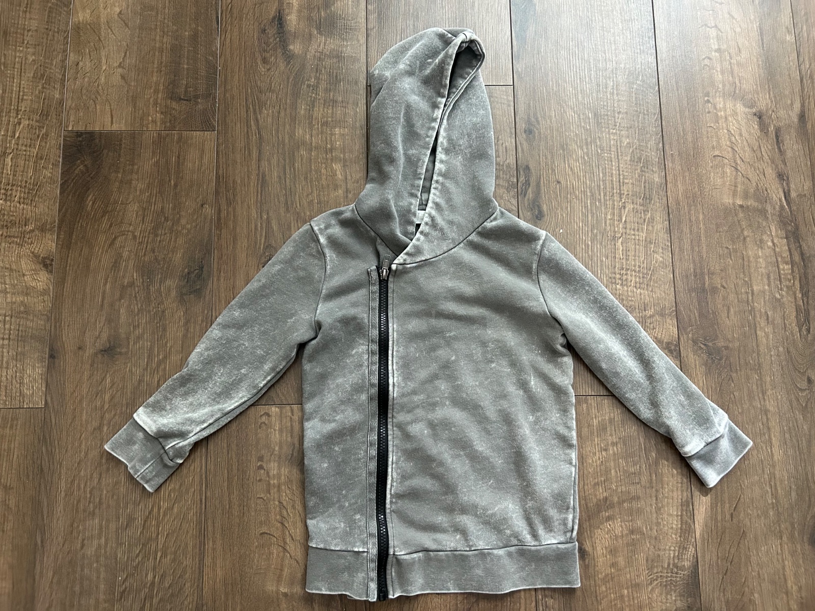 Nosená mikina na striedačku s mnoho inými, v super stave. Zapínanie až ku krku. Písaná veľkosť 110/116 4-6 rokov dĺžka 47cm šírka 38cm x2 rukáv od kapucne 46cm