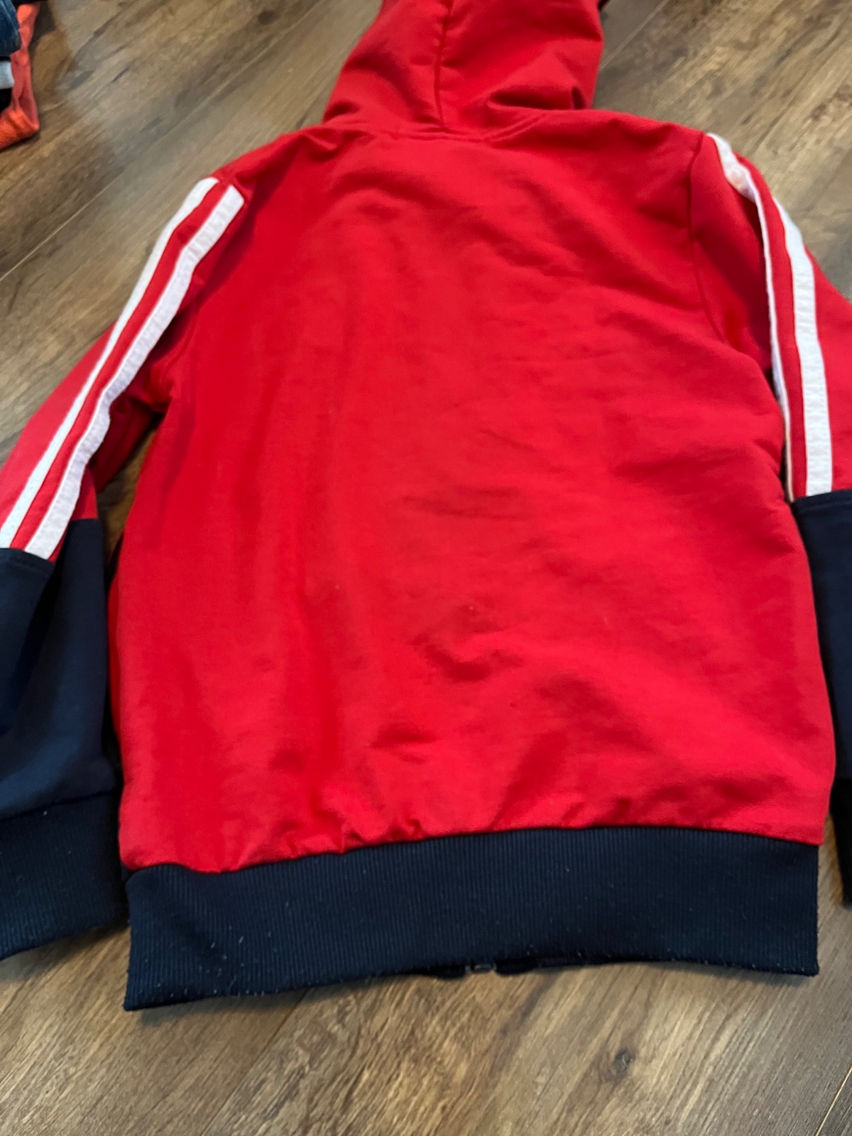Bez fľakov a poškodení, farba nie je vyblednutú, iba žmolky na manžetách.