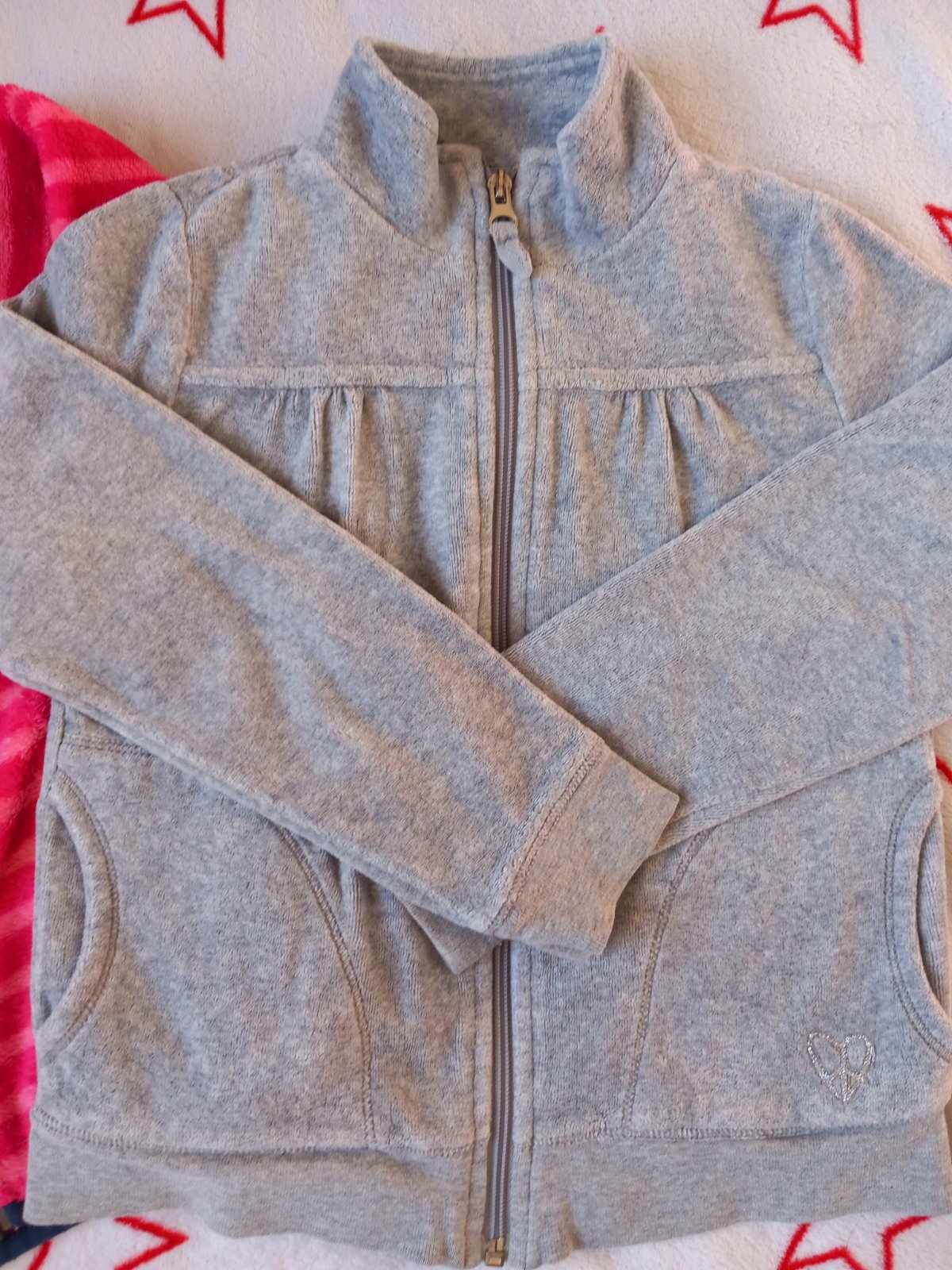 Predám zachovalú zateplenú dievčenskú mikinku veľkosť 110/116. Bežné známky nosenia, viď foto.( mini zmolky a trosku vyblednuta farba, ešte však poslúži.