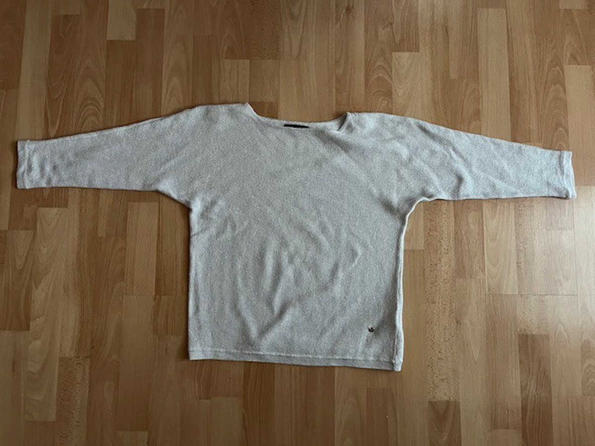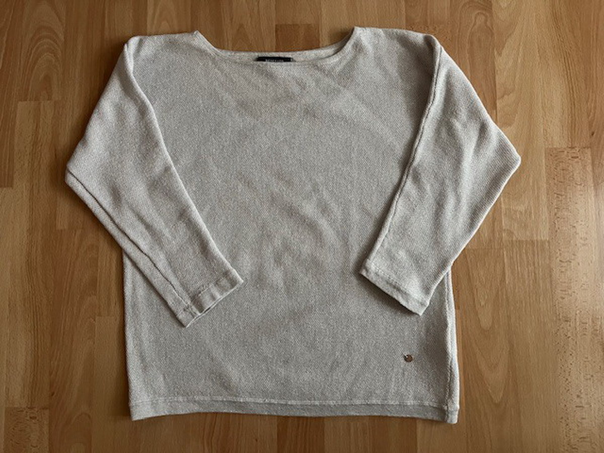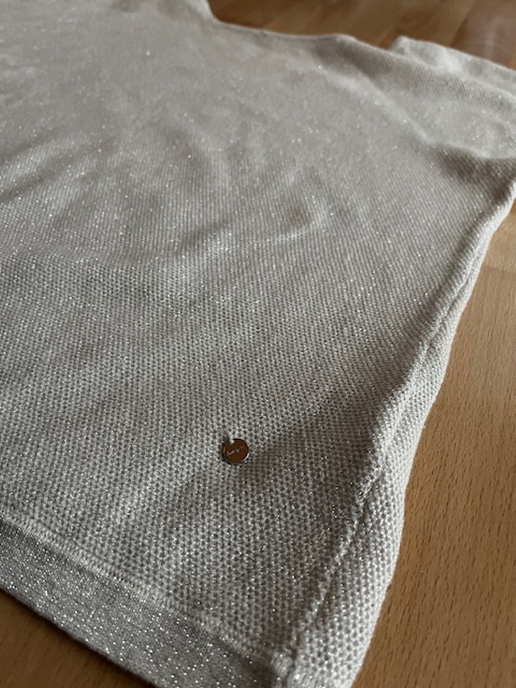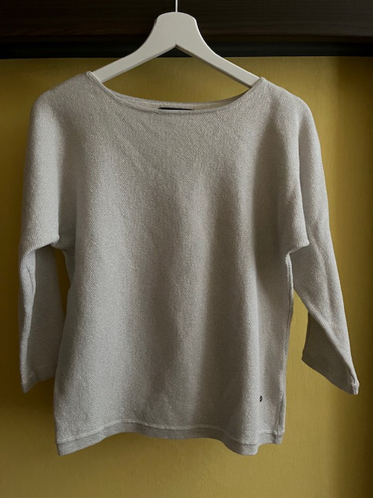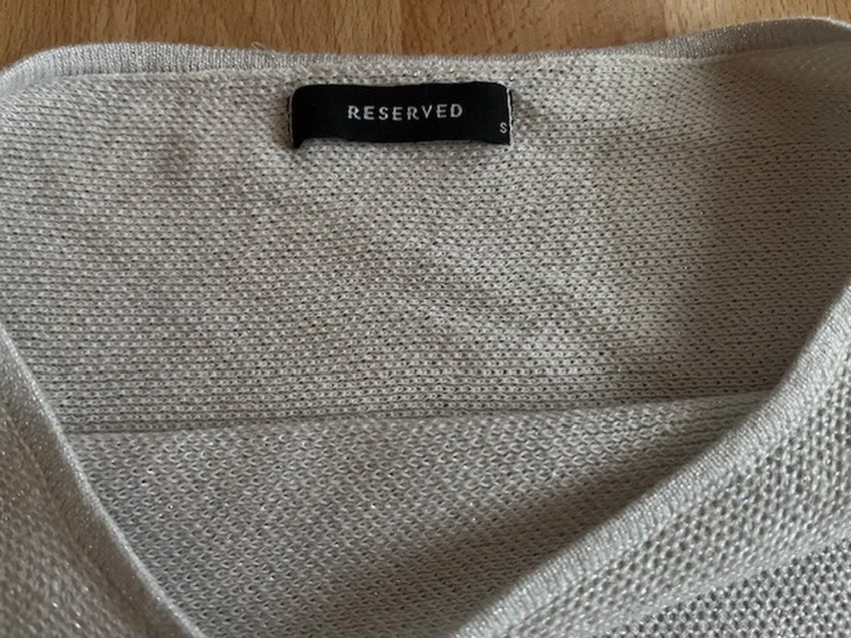 Dámsky pulóver s 1/3 rukávmi značky Reserved, veľkosť S, popretkávaný striebornou niťou, materiál: 70% bavlna, 30% metalizované vlákno
