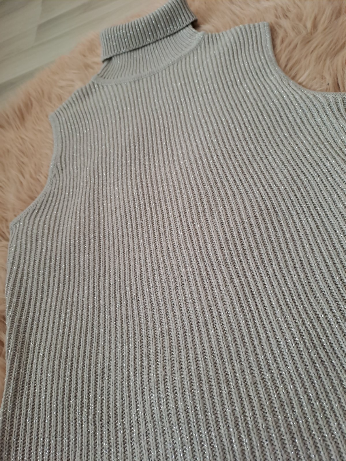 Rolacik bez rukavou. Krasny na natelnik ;-) je teply a prijemne poddajny. Presivany striebornou nitou. Veľ. L, krasny stav bez poskodeni.