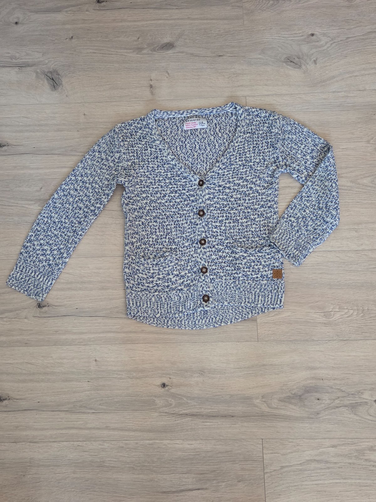 Ľahučký pletený svetrík s vreckami v dobrom stave.
