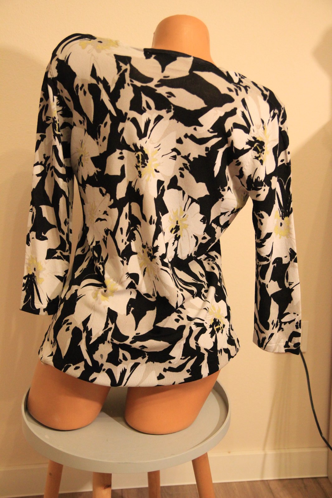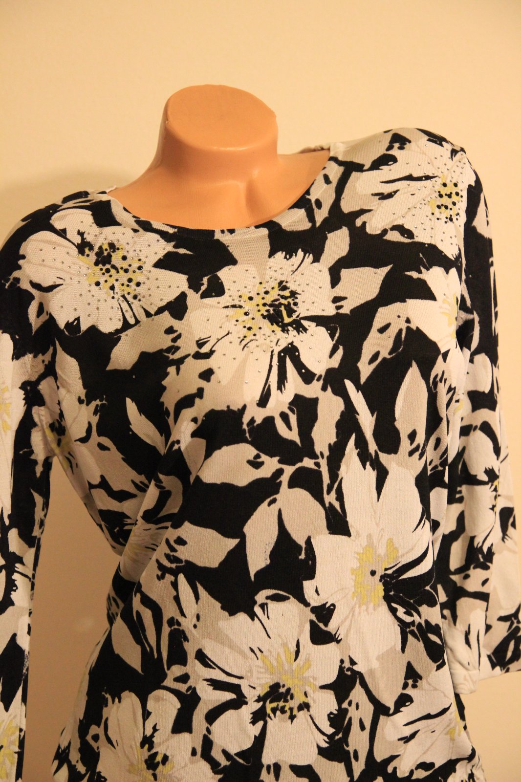 Čierno bielo béžový kvetinový sveter, veľkosť M/L, elastický materiál, top stav.