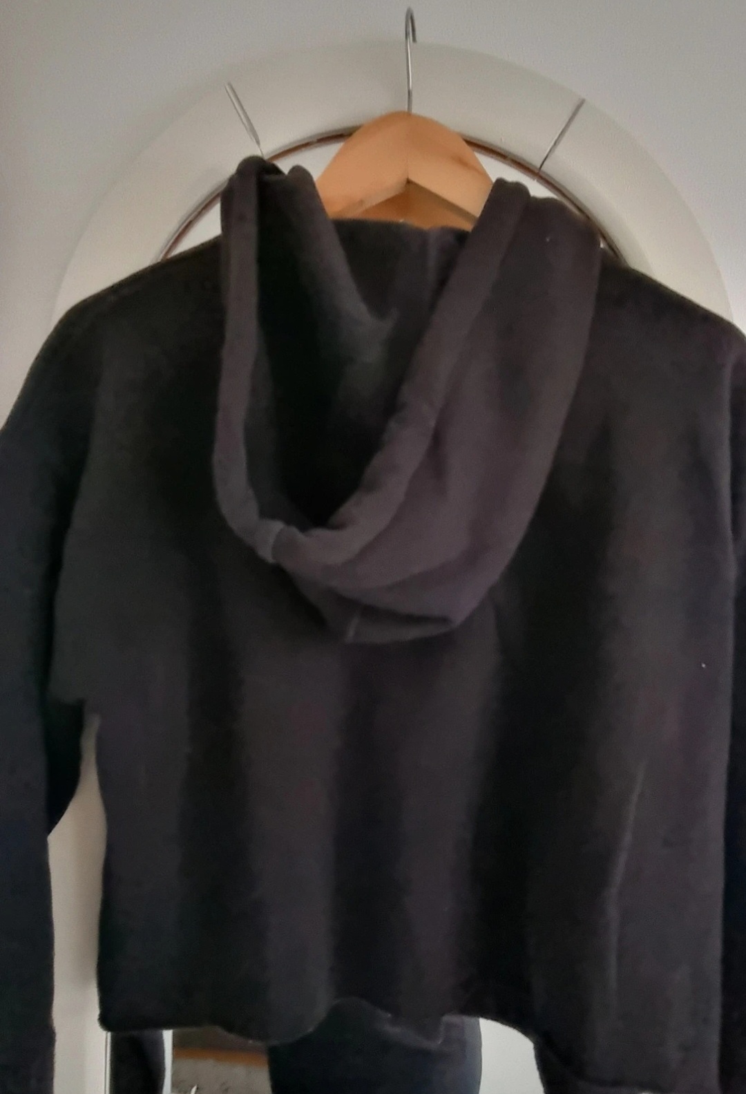 Nosená doma, vidno už žmolky, ale na fotkách sú o dosť výraznejšie ako v skutočnosti. Dĺžka pod prsia, kapucňa. Trochu zateplená. Nevyblednutá