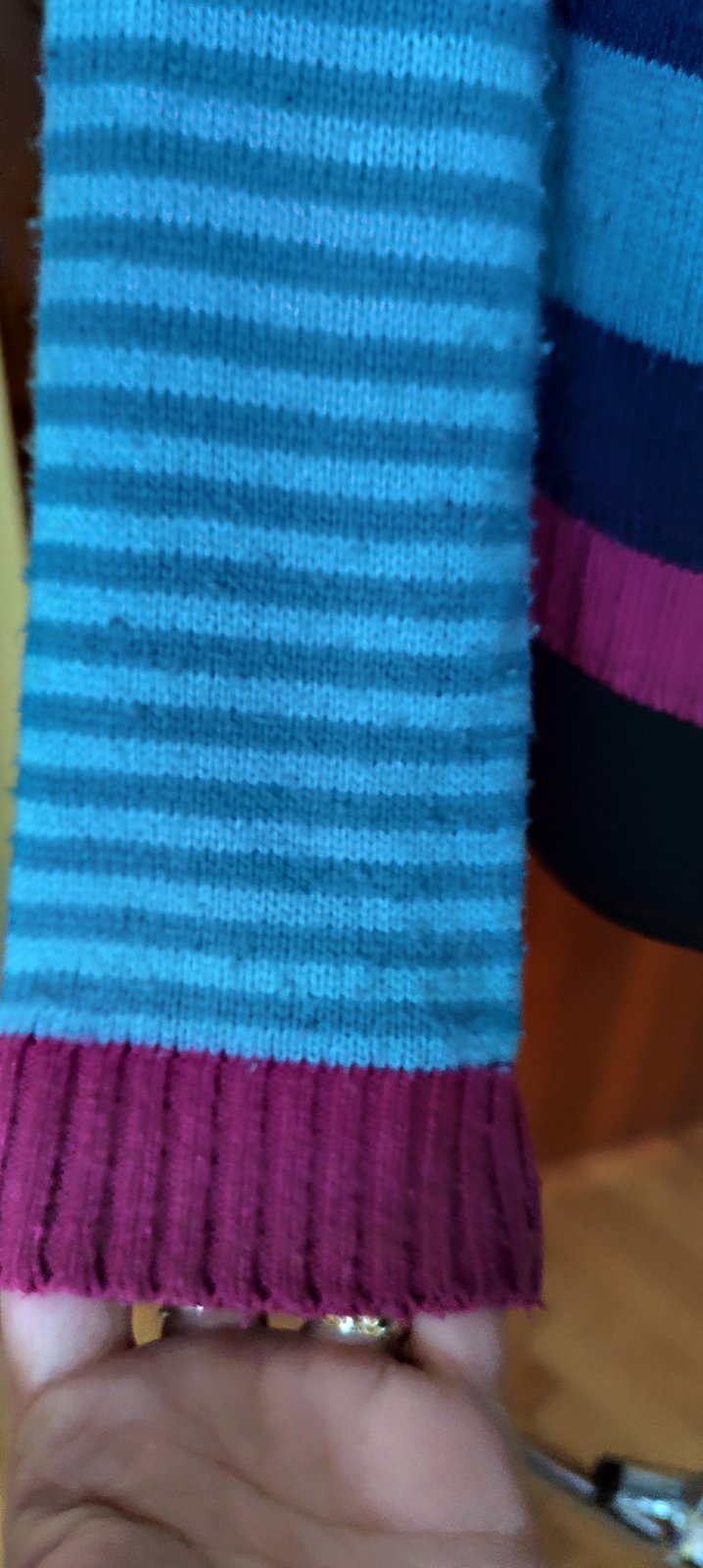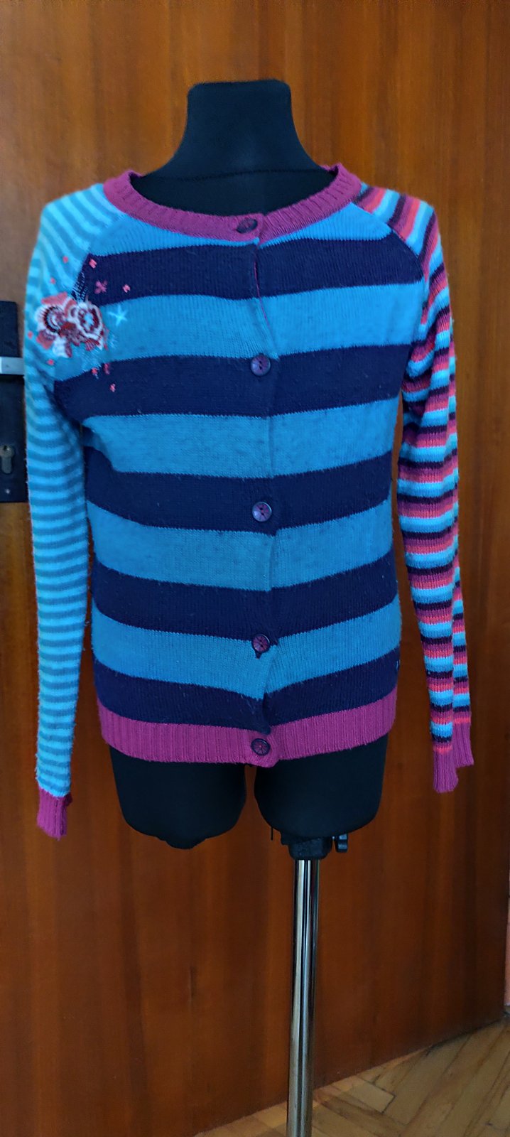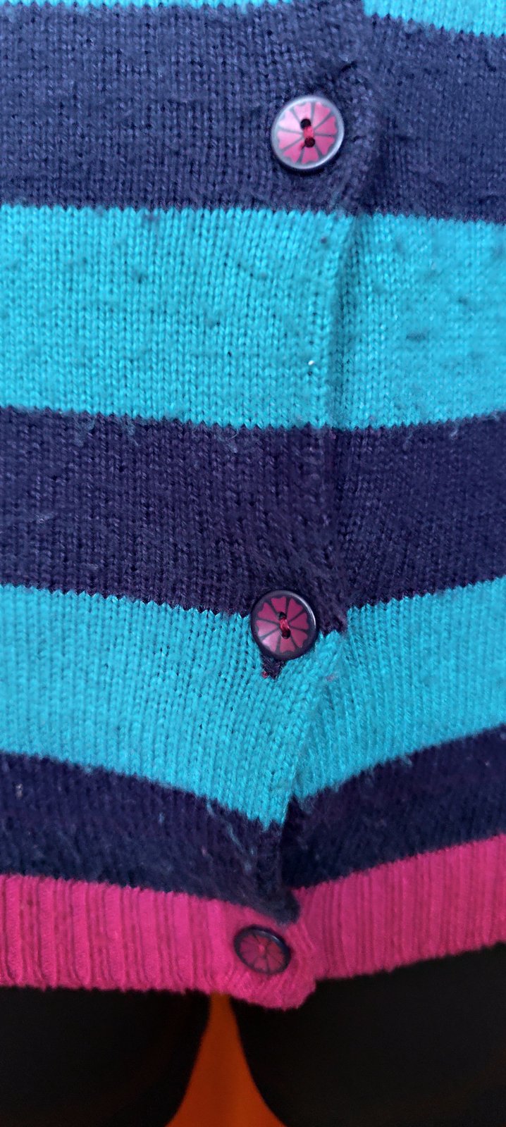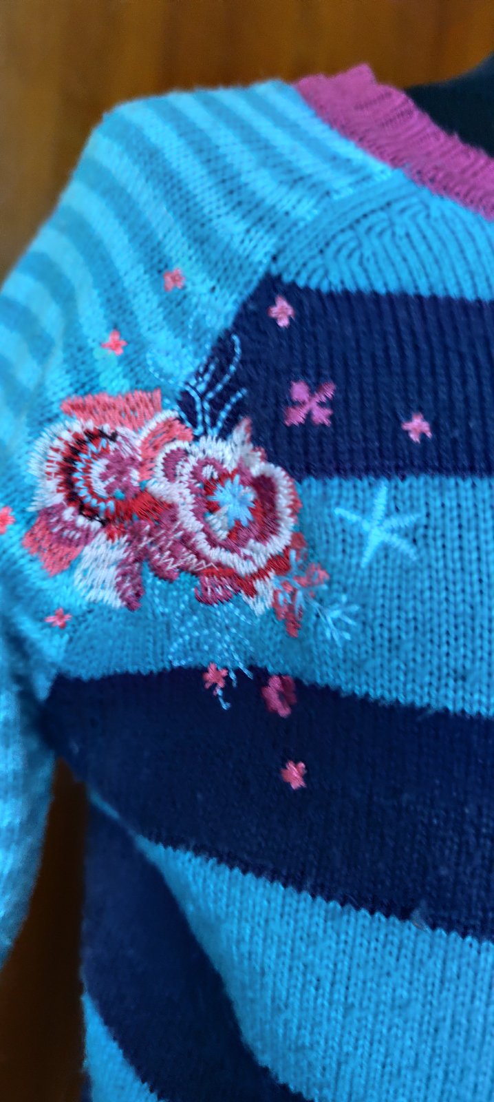Predám krásny farebný svetrík. Ma jemné zmolky, no to sa dá odzmolkovat, iné poškodenie nevidím. Veľkosť je na 10 rokov.