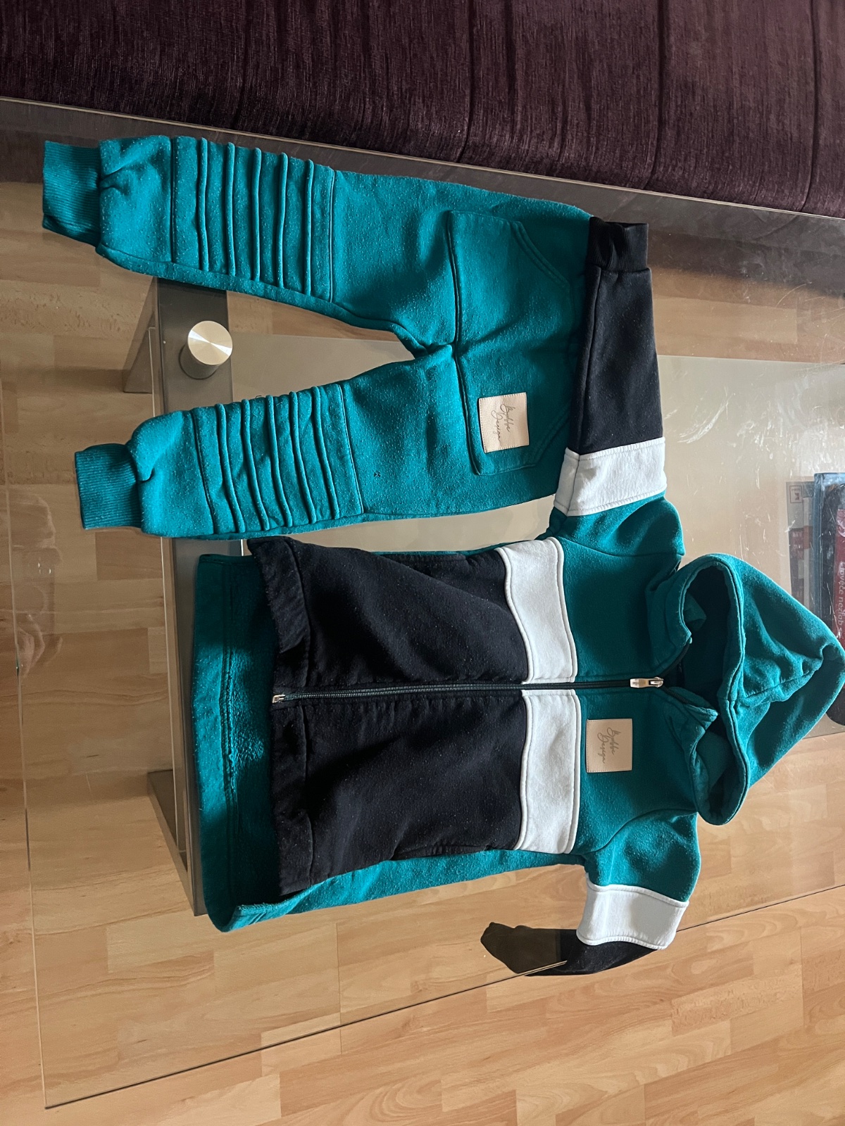 Super stav. Bez poškodenia. Orandžova mikina skoro nenosena (pepco) píše väčšie cislo ale sedí na 98. Nohavice pružne, na gombík, pas sa dá nastaviť, užšia postava. Cena spolu.