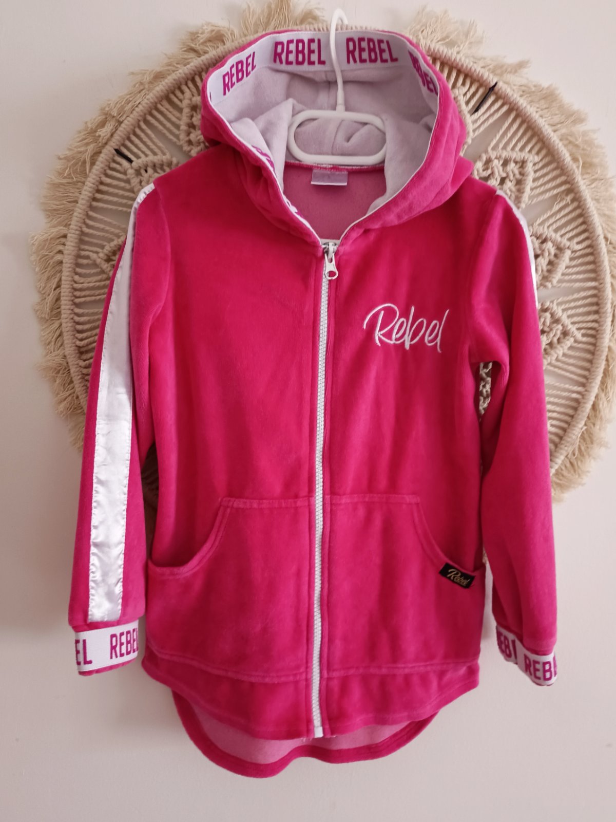 Predám Rebel predĺženú mikinu v top stave, ako nová. Veľkosť 116/122. Dĺžka 60cm. Šírka 33cm. Dĺžka rukáva 35cm. Pribalím k nej hrubšie čierne H&M legínky, veľkosť 122, dĺžka 65 cm.