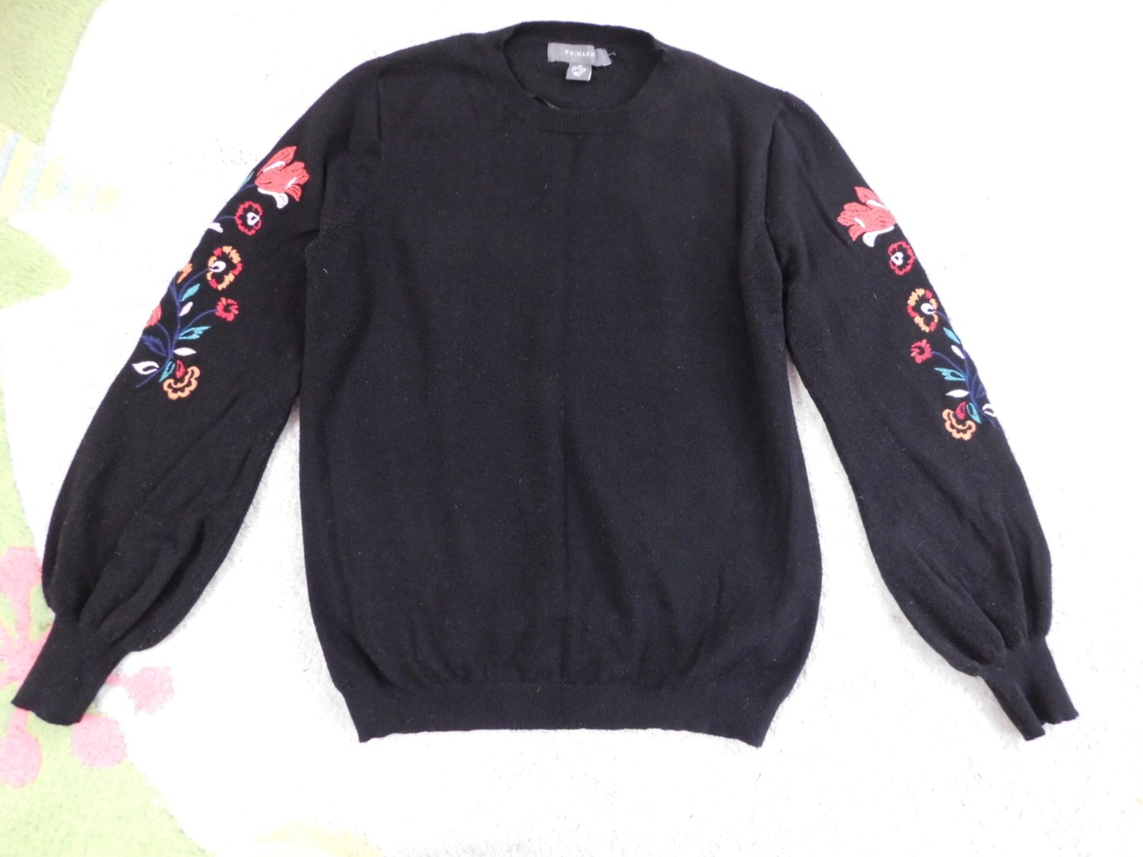 predám vyšívaný pulóver Primark, veľ. M, dĺžka 56, šírka 45,5, rukáv 66 cm + lem na krku 2 cm, málo nosený v bezchybnom stave, cena 5,- plus pošt.