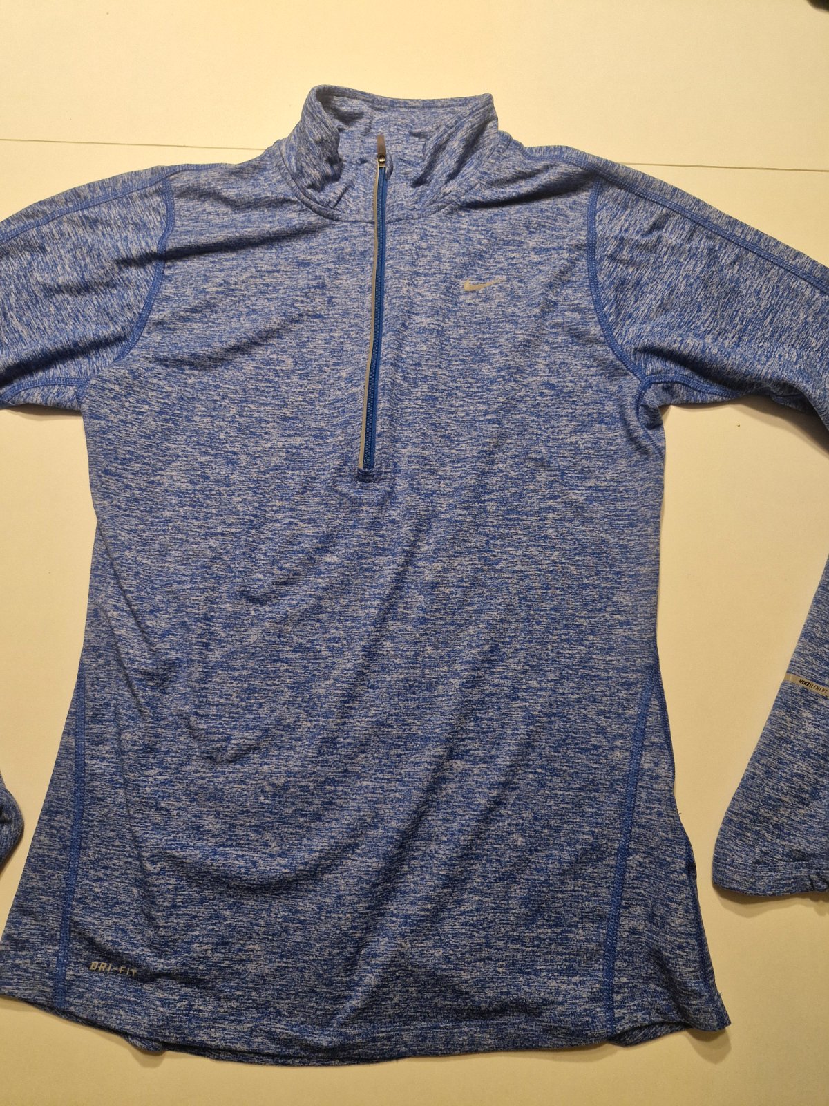 Bledo modra nike mikina malo nosena zial ma dieru na chrbte . Bude tam treba našiť nažehlovačku . Je to na rychlo ručne zašite aby sa to neparalo ďalej . Preto ta cena. Dlzka 61cm , sirka cez prsi...