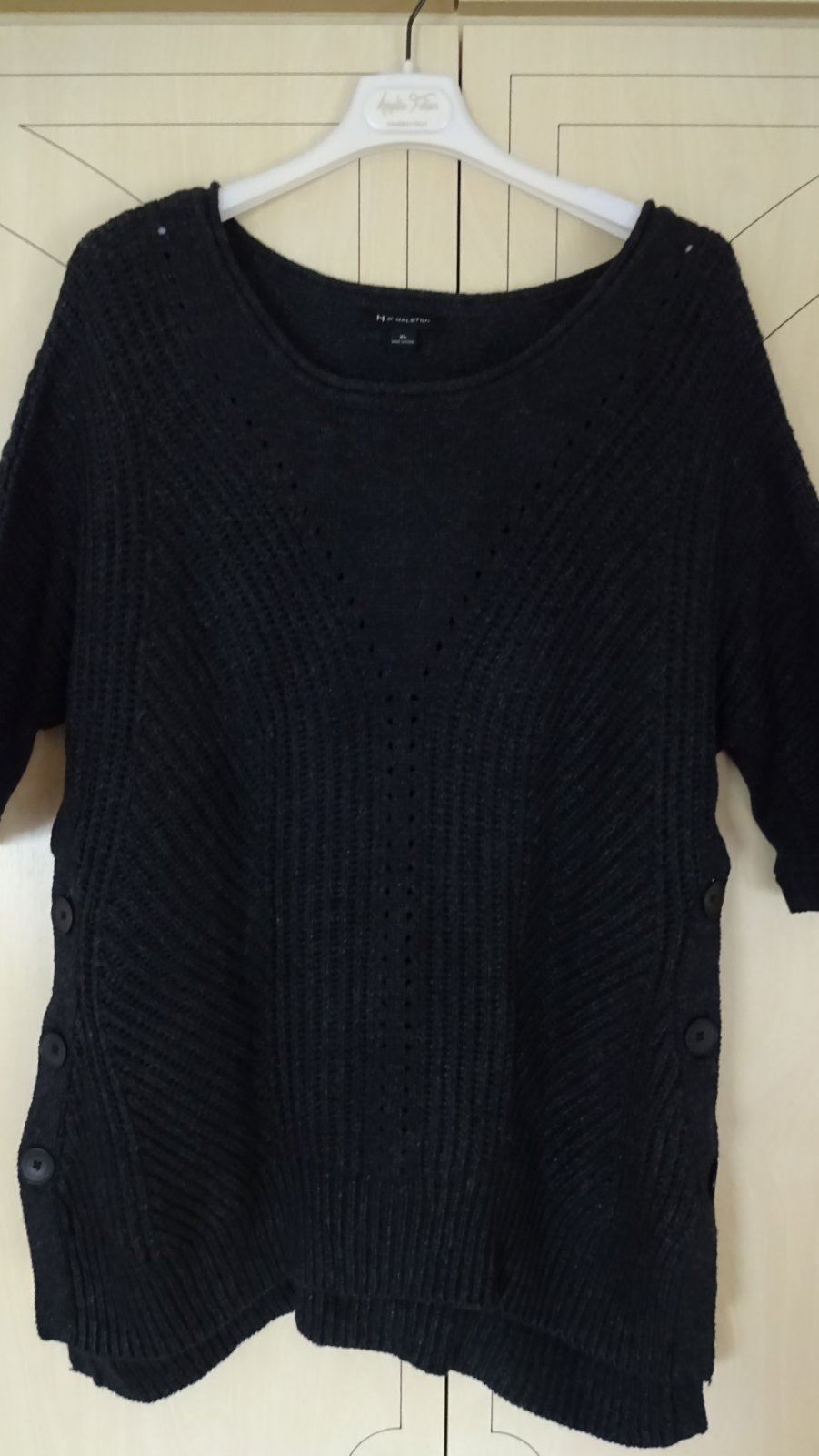 Luxusný značkový pulover so zaujímavým vzorom a gombíkmi po bokoch, ktoré sa dajú rozopnúť až do podpazušia... super stav, ako nový.. makký materiál s prímesou vlny... velkosť uvedená XL, ja som uviedla L, premerajte si: dlžka 68 predok, zadná časť 74cm, podpazušie 55cm, šírka pri spodnom gombíku 58cm