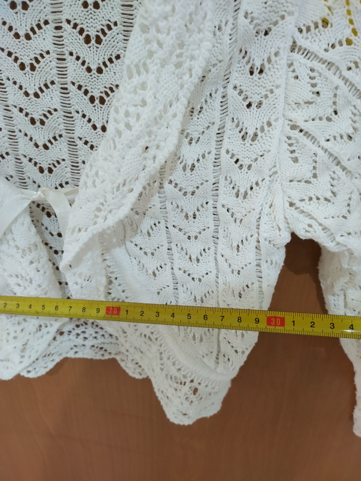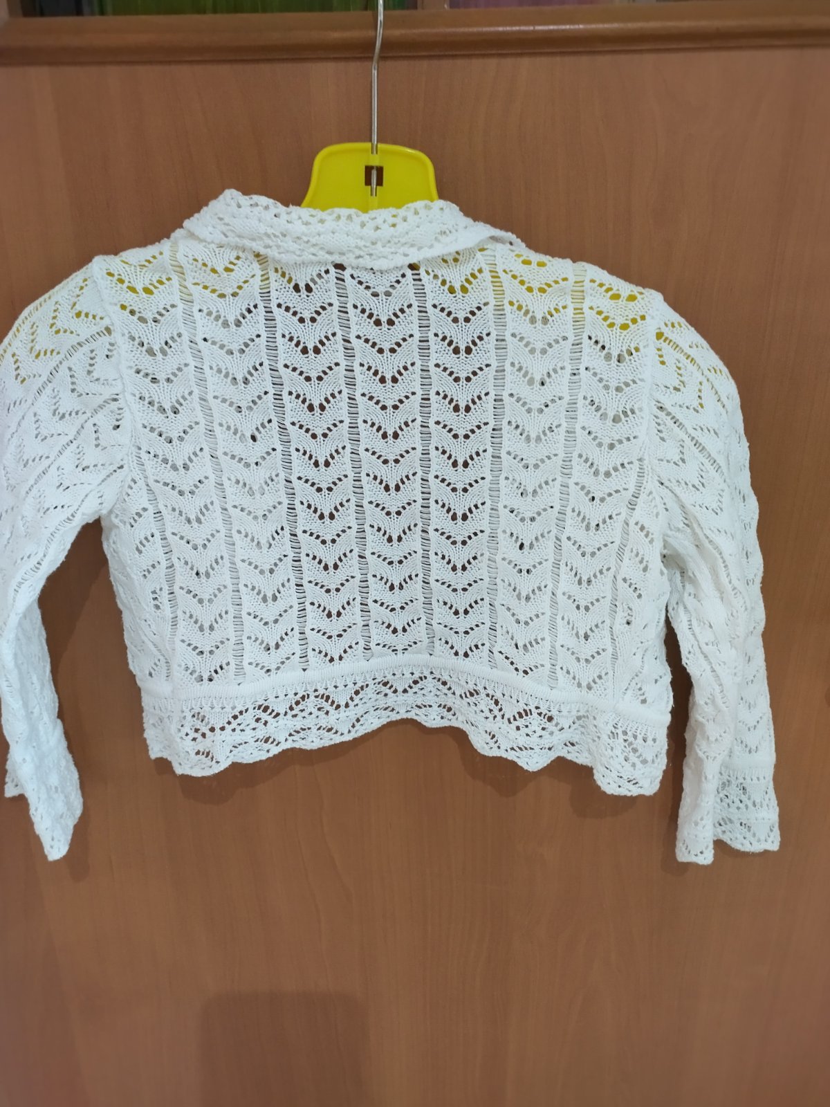 Predám málo nosené bolerko H&M 134/140 vo vynikajúcom stave. Dĺžka rukáva je 61 cm a dĺžka bolerka 33 cm. K cene si treba pripočítať poštovné.