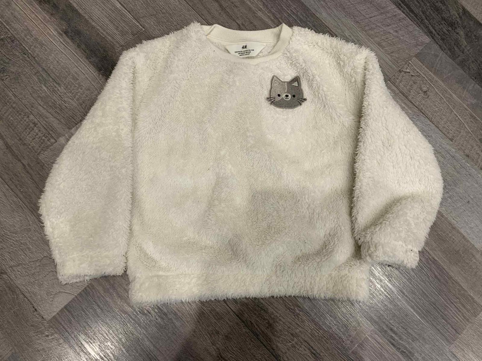 Príjemná, teplá, huňatá mikina s mačičkami na prednom diely. Mikinka bola málo nosená, takže je vo výbornom stave. Udaná je veľkosť 110/116. Rozmery: š.35cm, dl. 40cm, rukáv 40cm.