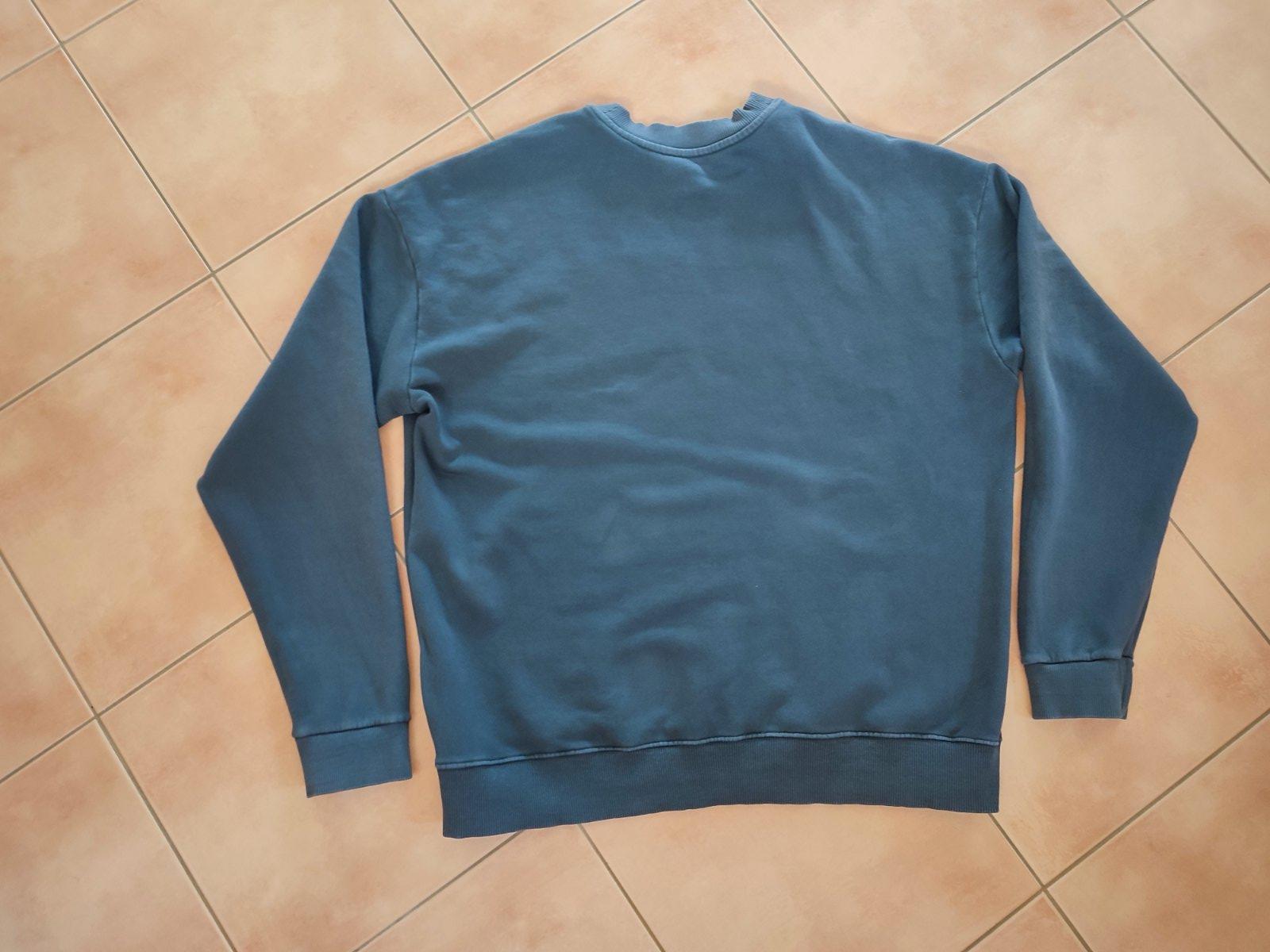 Mikina príjemného materiálu, veľkosť L, kľudne aj XL. Celková dĺžka od ramena dole 71cm, šírka v prsiach 2x63 cm, povolí v pohode aj 10cm. Sém tam malé minizmilky, ale je v pohode na bežné nosenie.